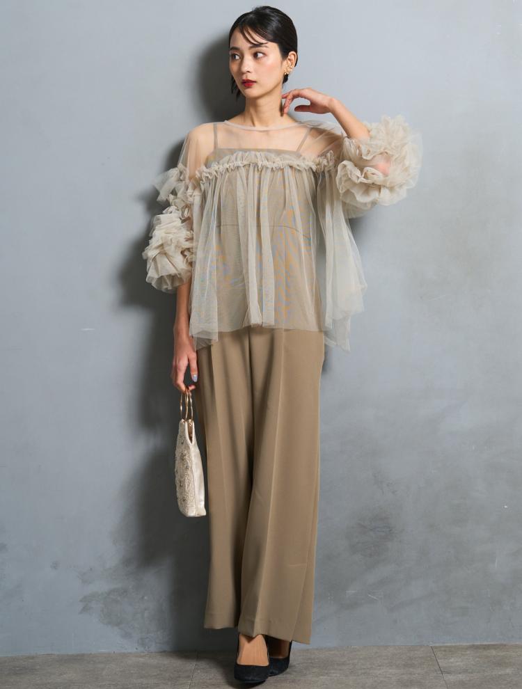 30代で肌の露出感が多いと、若作りしたイタイ印象に。30代は透け感を上手に使いましょう。透け過ぎが気になる時は、厚みのあるレースや透け感の控えめなのシアー素材がおすすめ。また、透け感と生地の厚みのバランスが良いと上品に見えます。