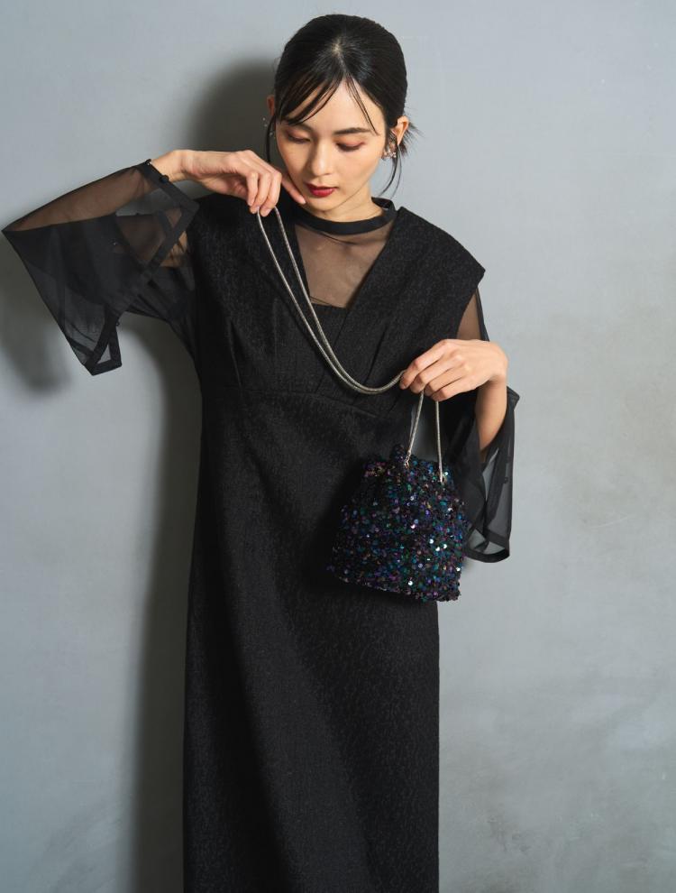 結婚式などフォーマルな場面で持つバッグは、小さいパーティーバッグやクラッチバッグ。バッグは、パンプスかドレスのカラーに合わせて色を選びましょう。色を多用するとカジュアルに見えてしまうので、特に親族は全体を2色までにまとめるように小物のカラーを選ぶのがポイントです。