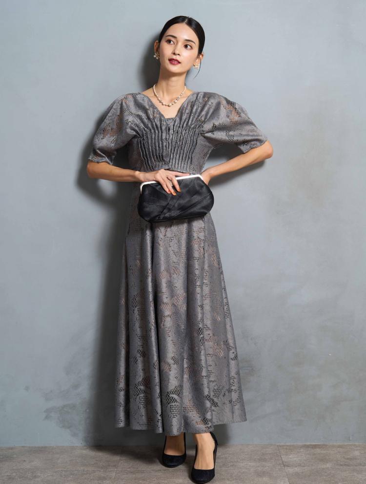 チャコールグレーやライトグレーは、近年人気のトレンドカラーでもあります。チャコールグレーならシックな印象で30代既婚者の親族ドレスにも最適。ライトグレーを既婚者が親族ドレスとして選ぶ時は、ブラックの小物や羽織とコーディネートすると落ち着いた雰囲気をプラスできます。
