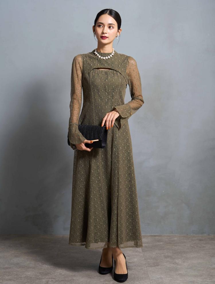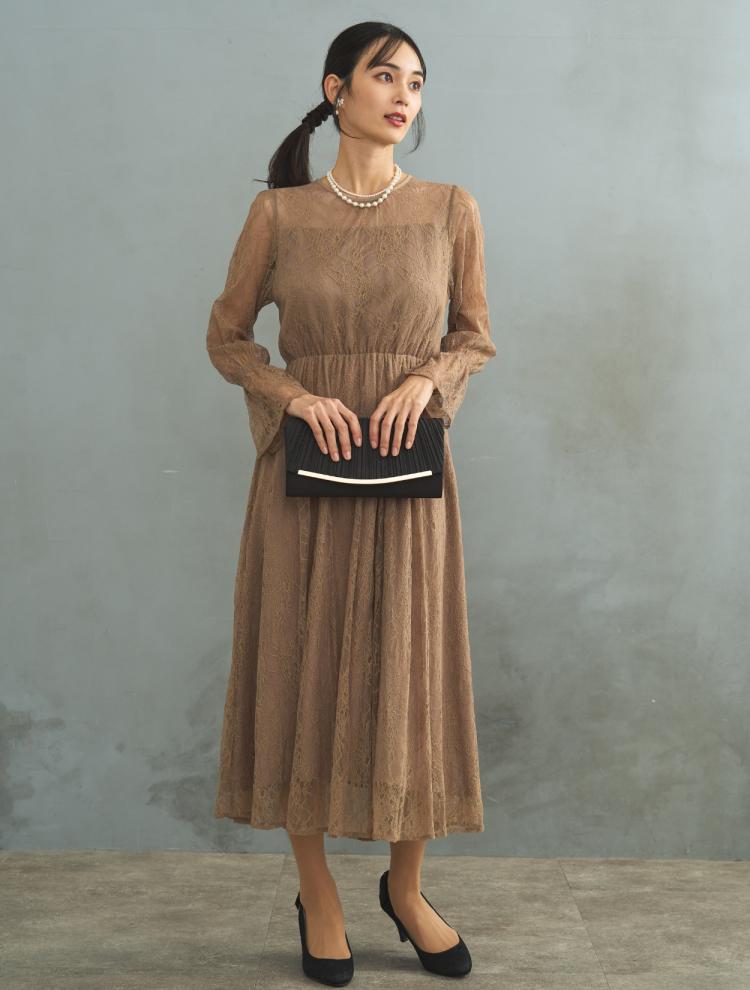 おしゃれ感のあるブラウンも落ち着いた印象で着られるので、親族ドレスに着てOK。