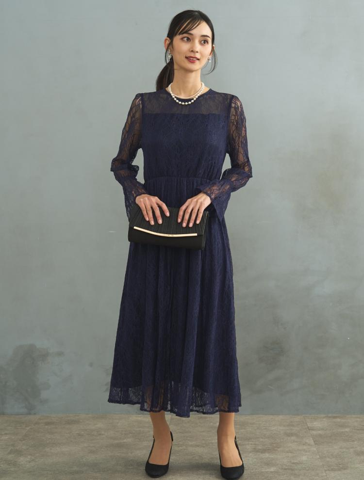 ベーシックカラーの中でも、どんな肌色でも馴染みやすいネイビー。疲れが顔色に出やすい30代後半のお肌を明るく見せてくれます。おすすめの親族ドレスカラーです。