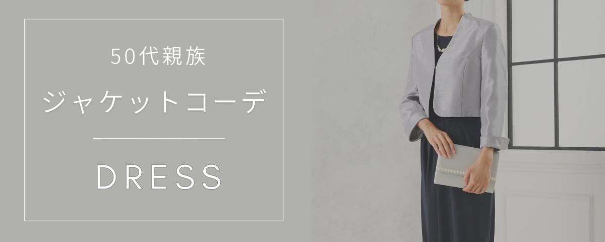また、デコルテに透け感があるドレスや、カラードレスを50代女性が着る時にも、ジャケットを羽織るだけでカチッとした親族感がUPします。