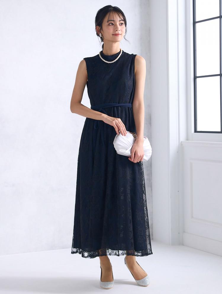 【M〜LL】レーストップスヘム裾ドレス(ネイビー)
