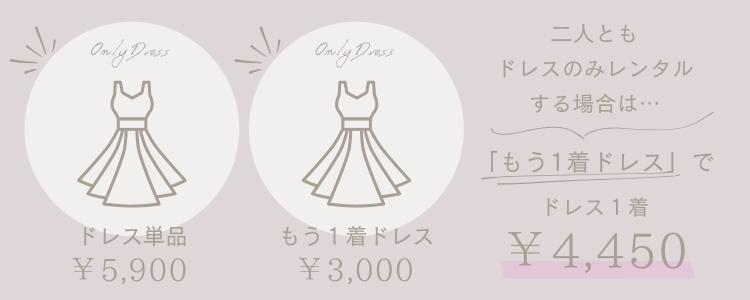 通常ドレス1着5,900円ですが、二人で借りると1着4,450円でレンタルできます♪