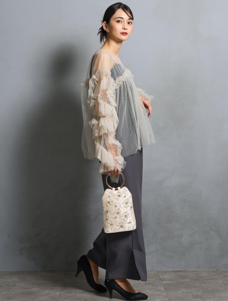 「上半身が華やかなデザイン」のドレスを選びましょう!アーティストとのツーショット撮影はもちろん、お友達との思い出写真も華やかに残せます。また、ディナーショーは着席がほとんどなので、上半身の華やかさは重要です。