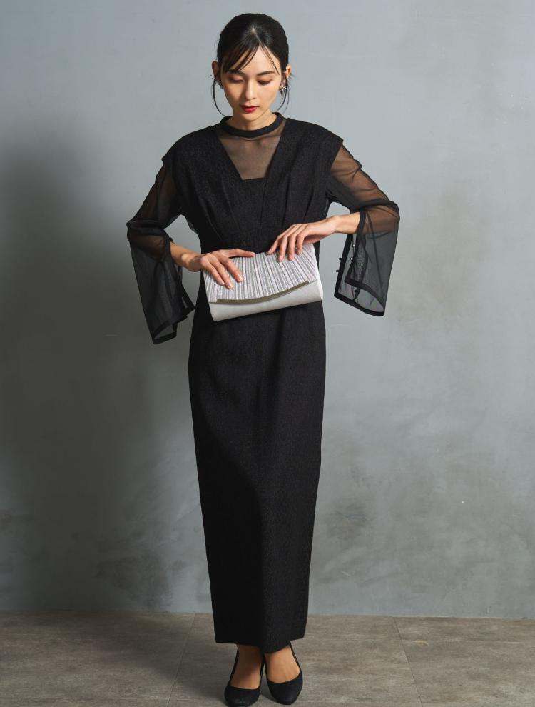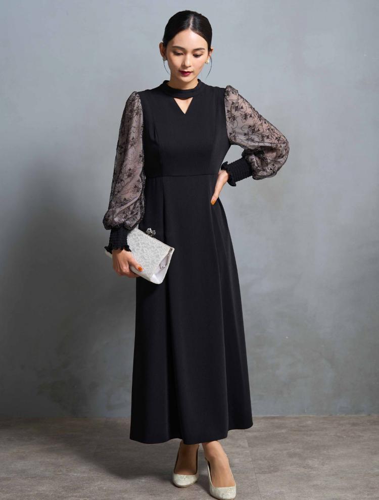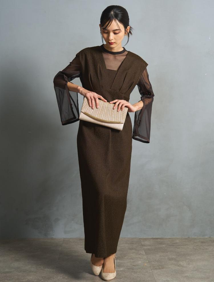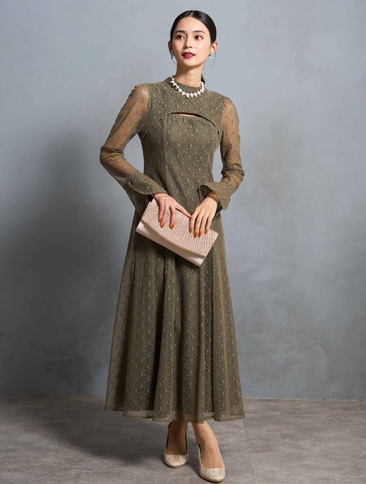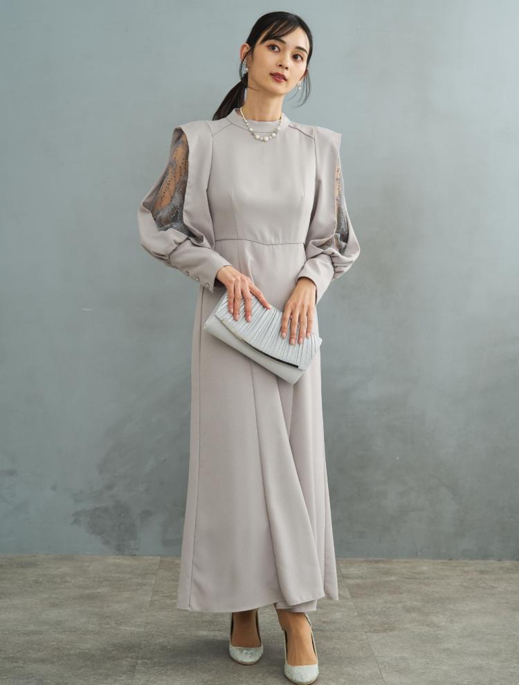 しっかりとした十分袖のドレスは、暖かく冬におすすめ。少しスッキリ見せたい方は、七分袖でも◎。
