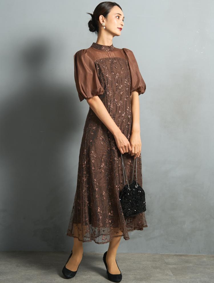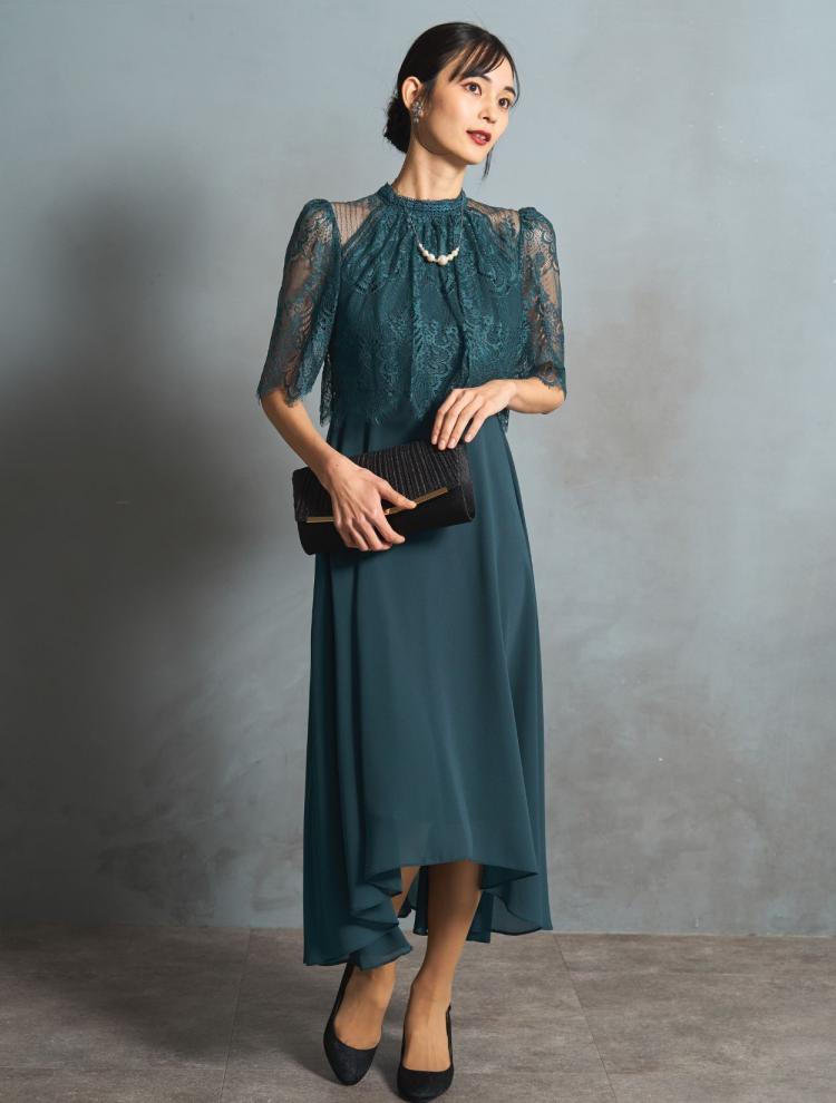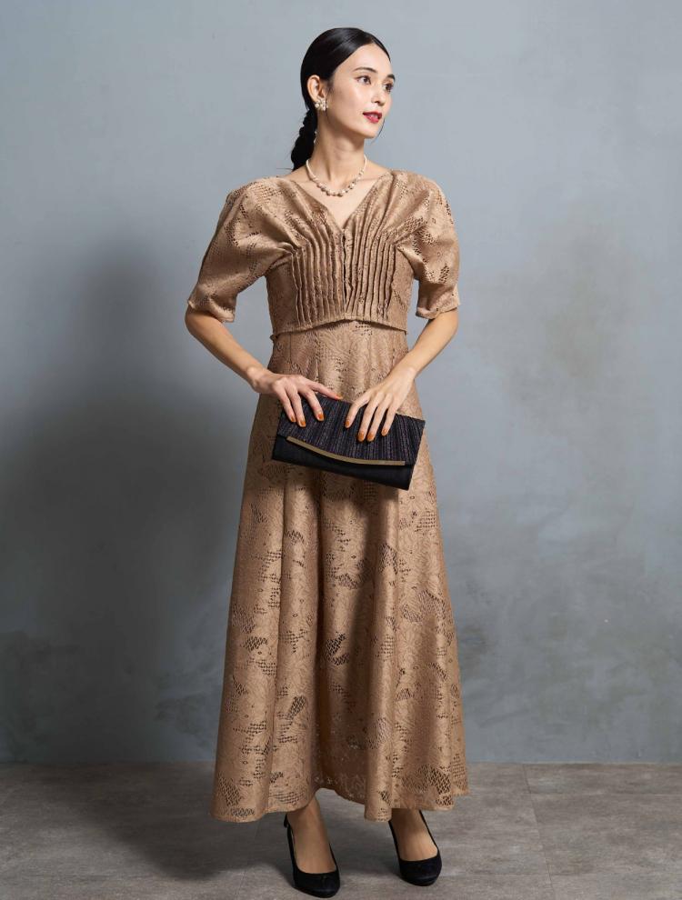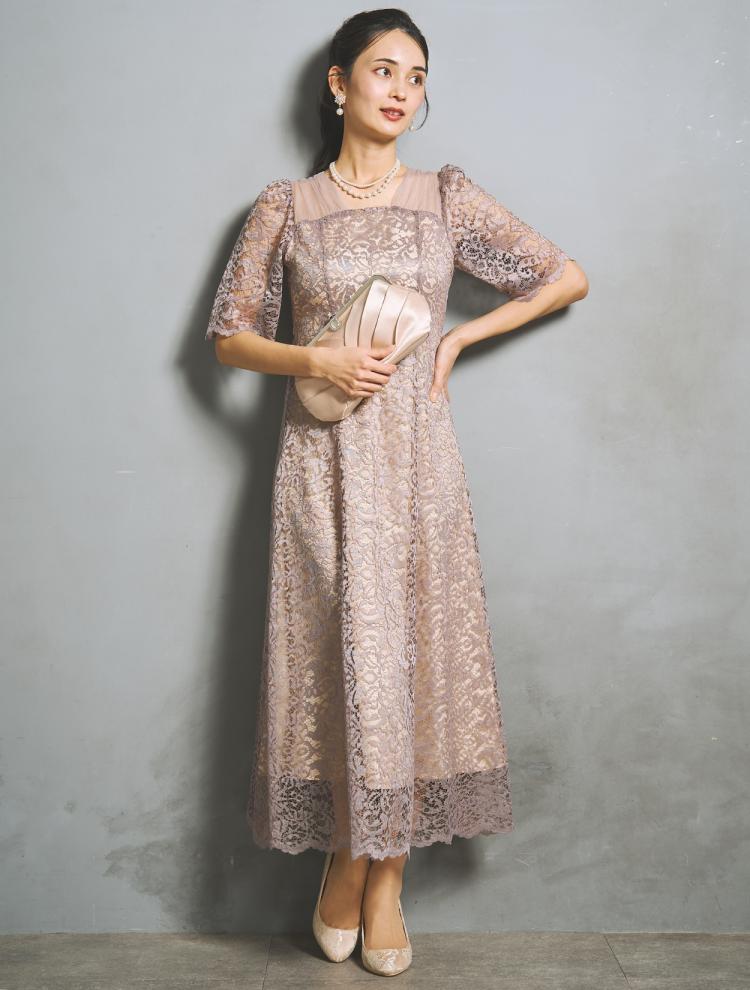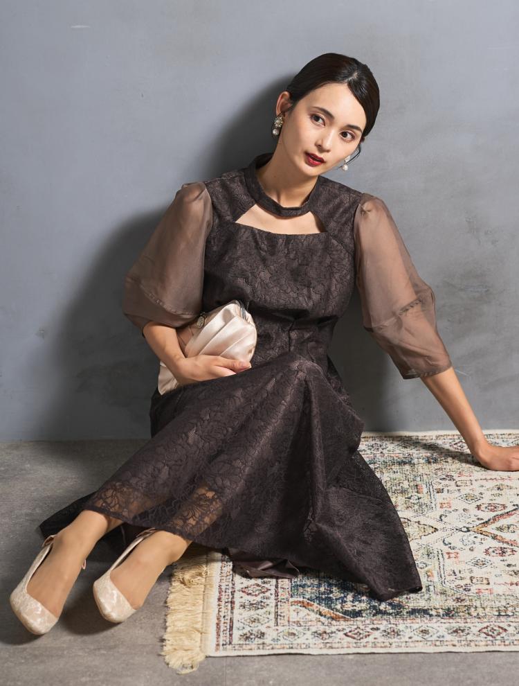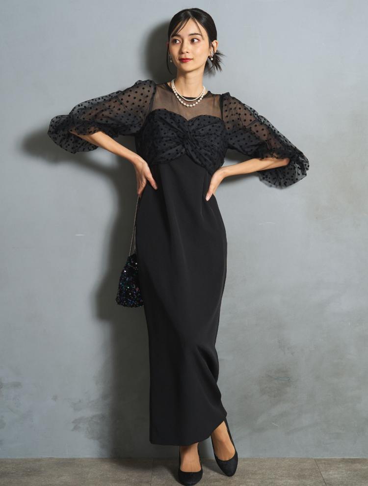 しっかりとした十分袖のドレスは、暖かく冬におすすめ。少しスッキリ見せたい方は、七分袖でも◎。