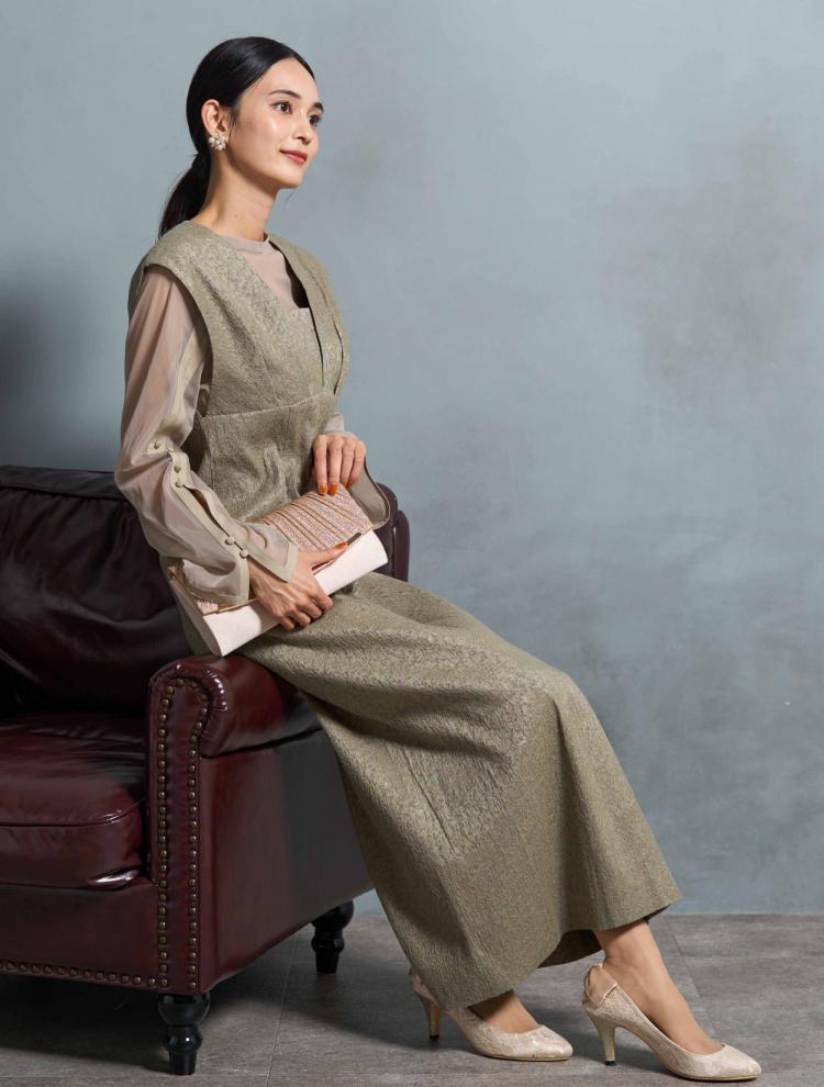 近年人気急上昇のパンツドレス。足元の冷えが気になる方には絶対おすすめです。結婚式らしいドレッシーなデザインのパンツドレスを選びましょう。