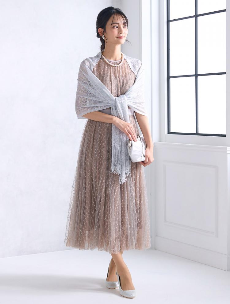 しかし、肩が出るスタイルはどの季節でも結婚式(特に挙式)ではNGなので、パーティー用の羽織(ショール・ジャケット・ボレロ)とセットで着ましょう。