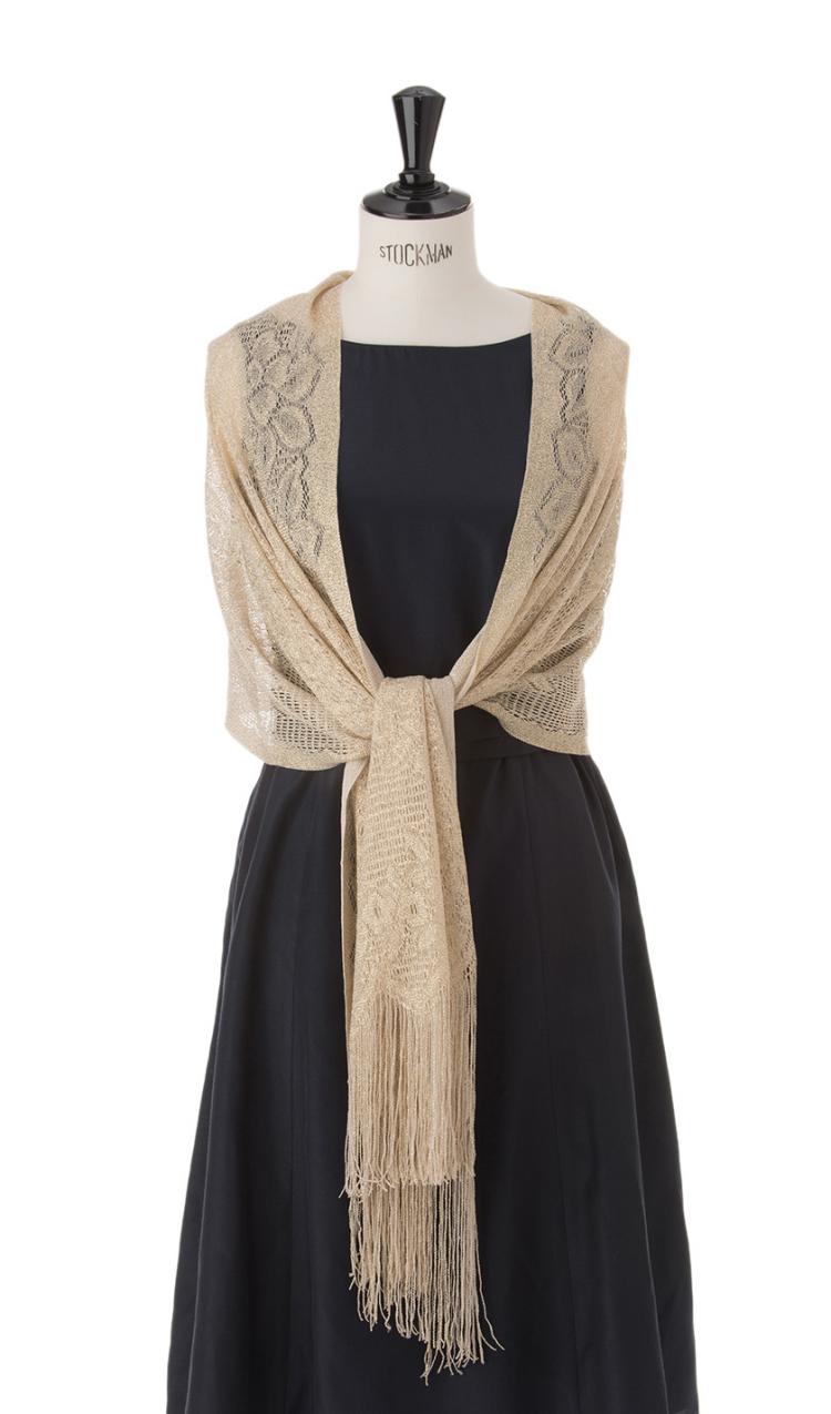 袖ありドレスの寒さ対策なら、肩からサラッと羽織れる「ショール」がおすすめ。会場の空調はしっかりしていますが、寒がりさんはパーティー用のショールを一枚持っておくと安心です。