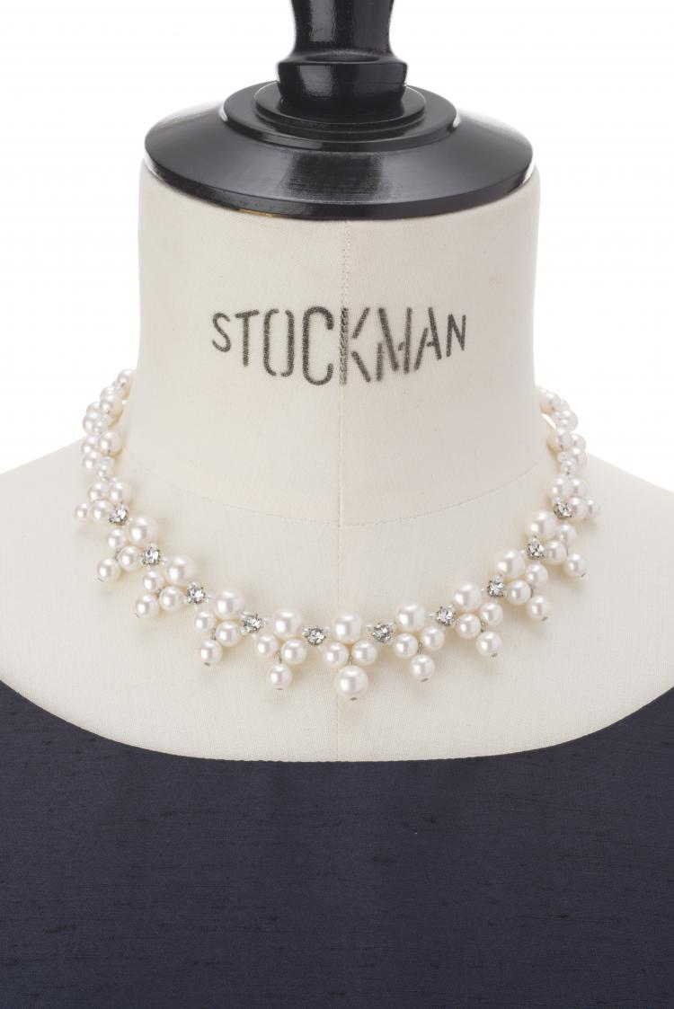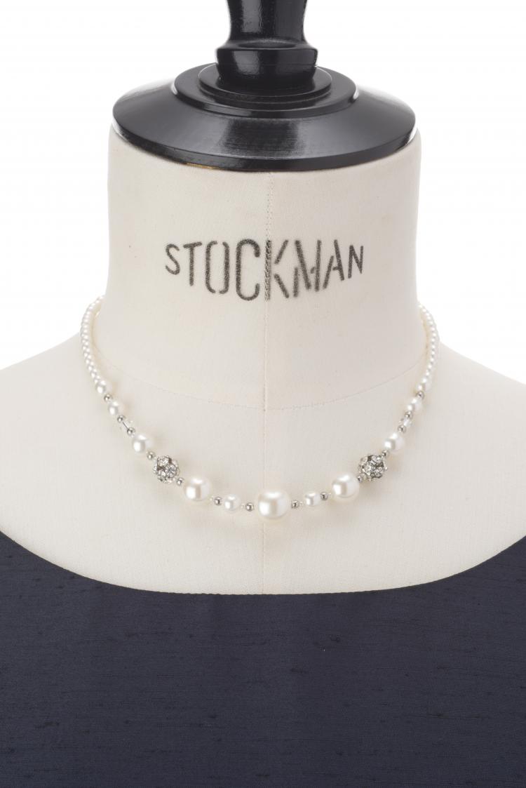 深みカラーやシックカラーの冬向けドレスによく合うアクセサリーは、なんと言っても「パール」。濃いカラーにはパールの白が美しく映え、お顔の写真写りもワンランクUP。また、ライトグレーや淡いアイシーカラーにも、パールの白はキレイに馴染みます。