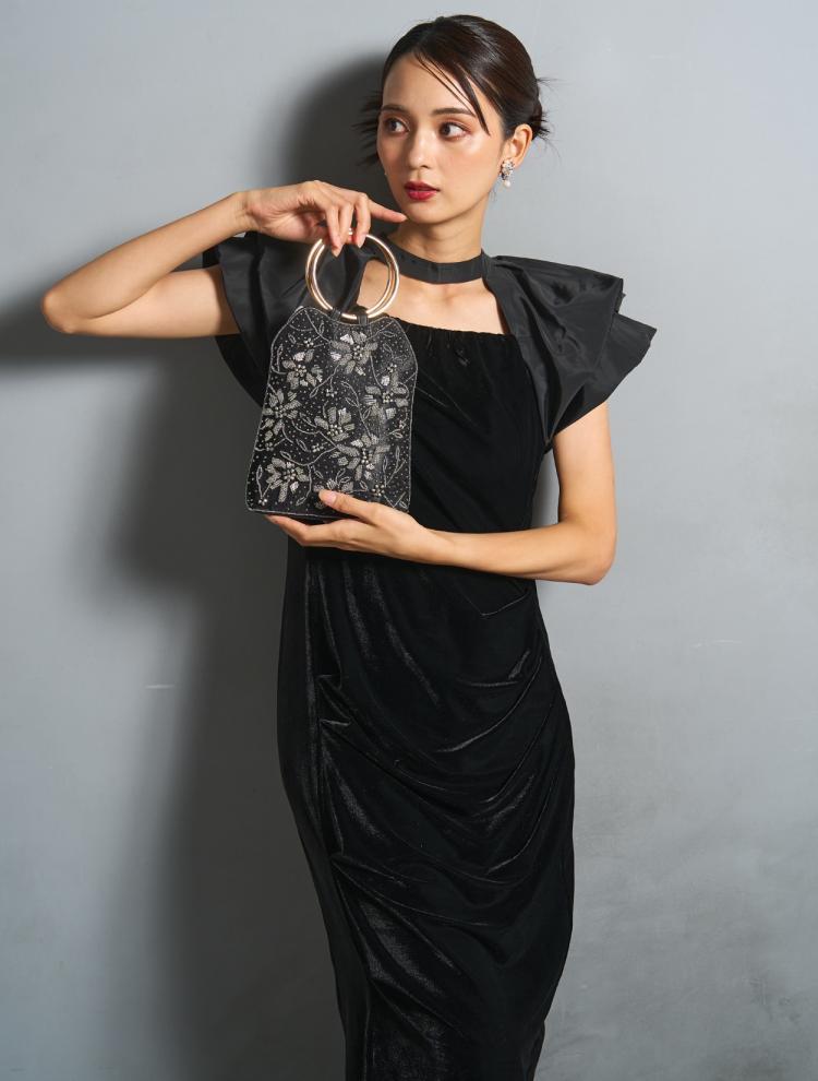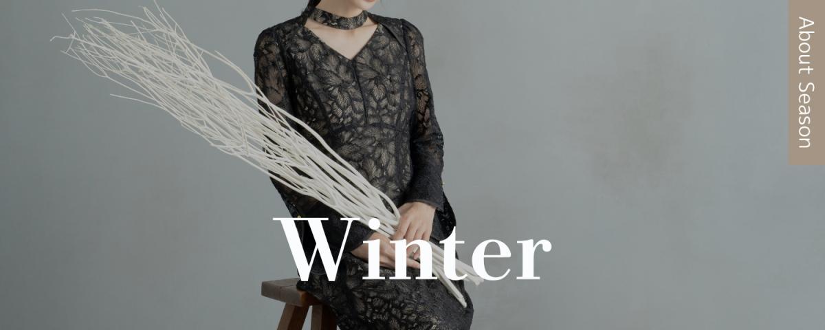 寒そうに見えないデザイン、実際に着ていて防寒になるデザインのポイントは、「露出を適度に抑える」こと!特に透け感のあるドレスは、長袖ロング丈など、肌の露出度を少なくするように意識すると冬らしく見えます。