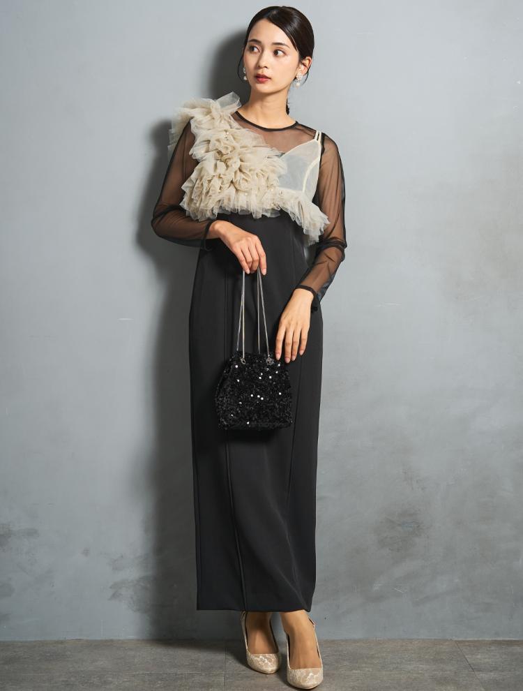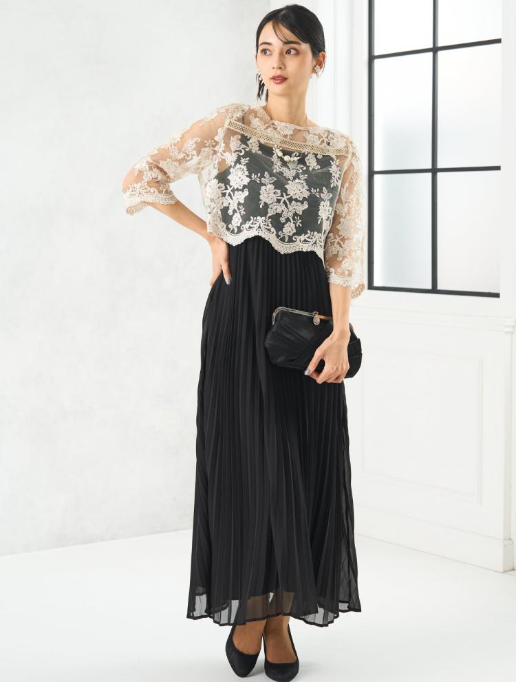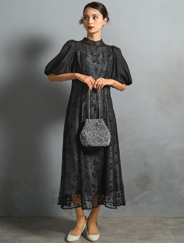 親族らしい落ち着いたブラックカラーに、地味になり過ぎないおしゃれなデザインがポイント。露出をおさえつつ、透け感のバランスが良いドレスをピックアップしました。