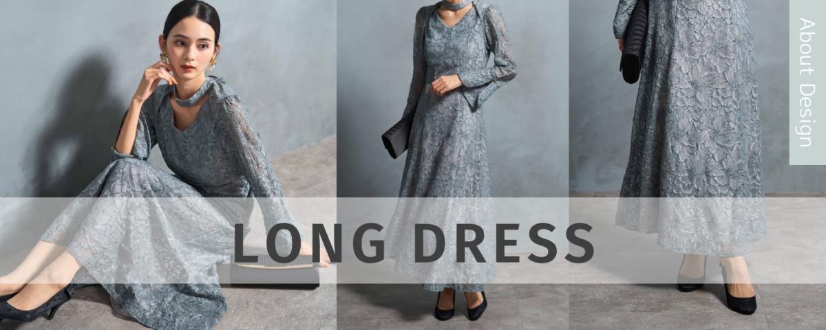 程よく厚みのあるジャガードのロングドレス。ロング丈の重厚感と、しっかりした生地の高級感がポイント。思った通りの着丈感で着られます。