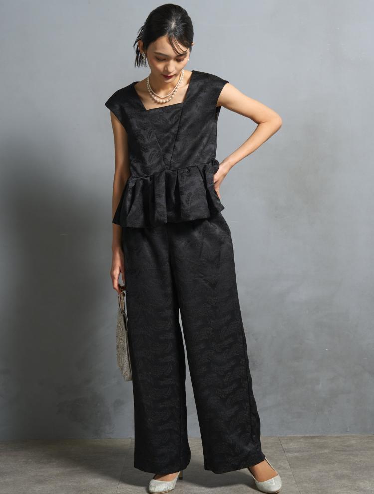 【S/M/L】ジャガードセパレートパンツドレス(ブラック)