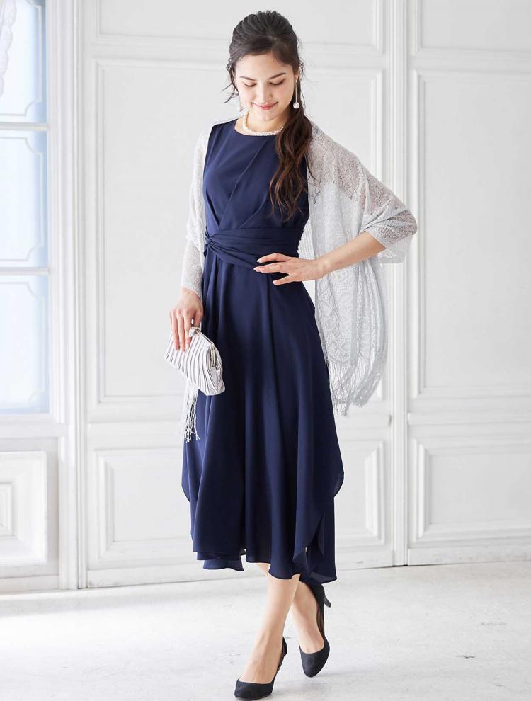 【M】ウエストギャザーフィッシュテールドレス(ネイビー)