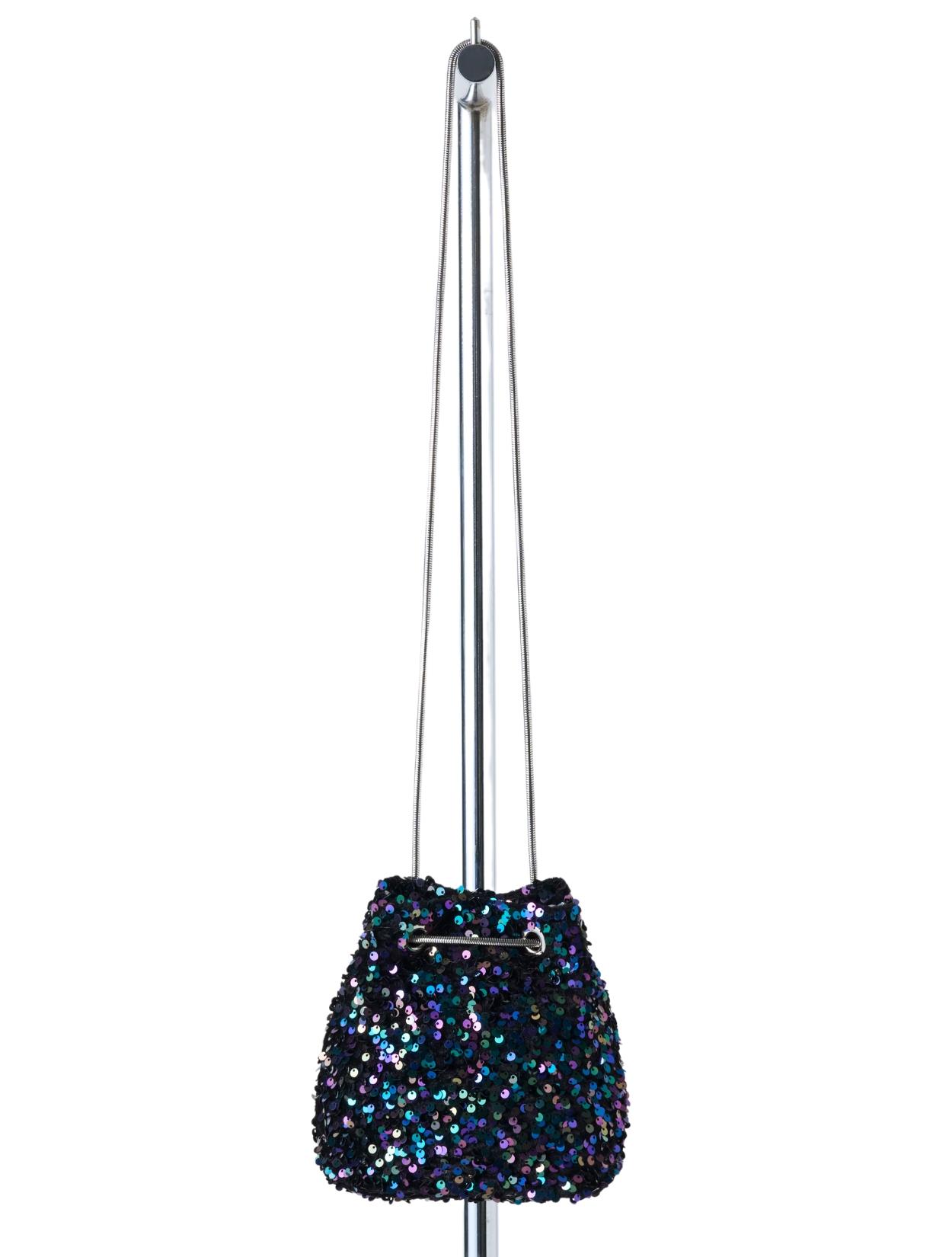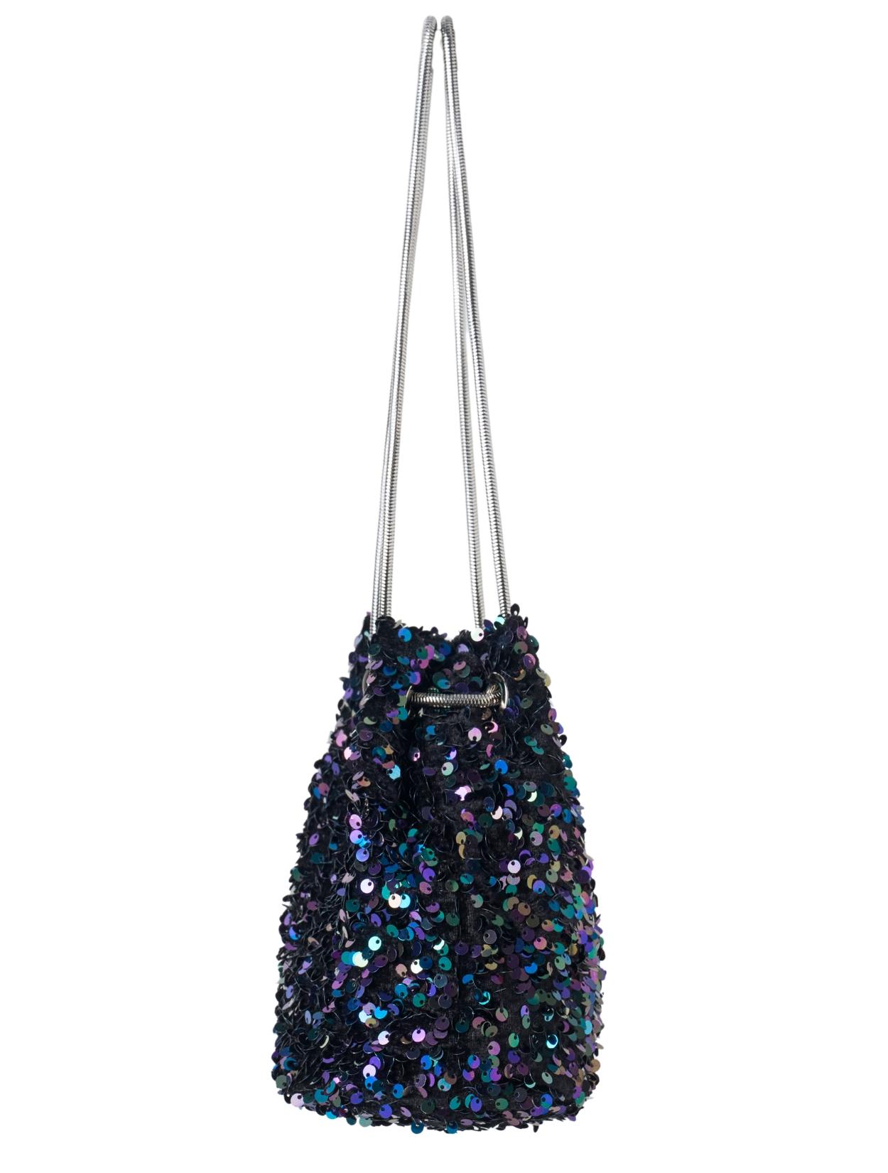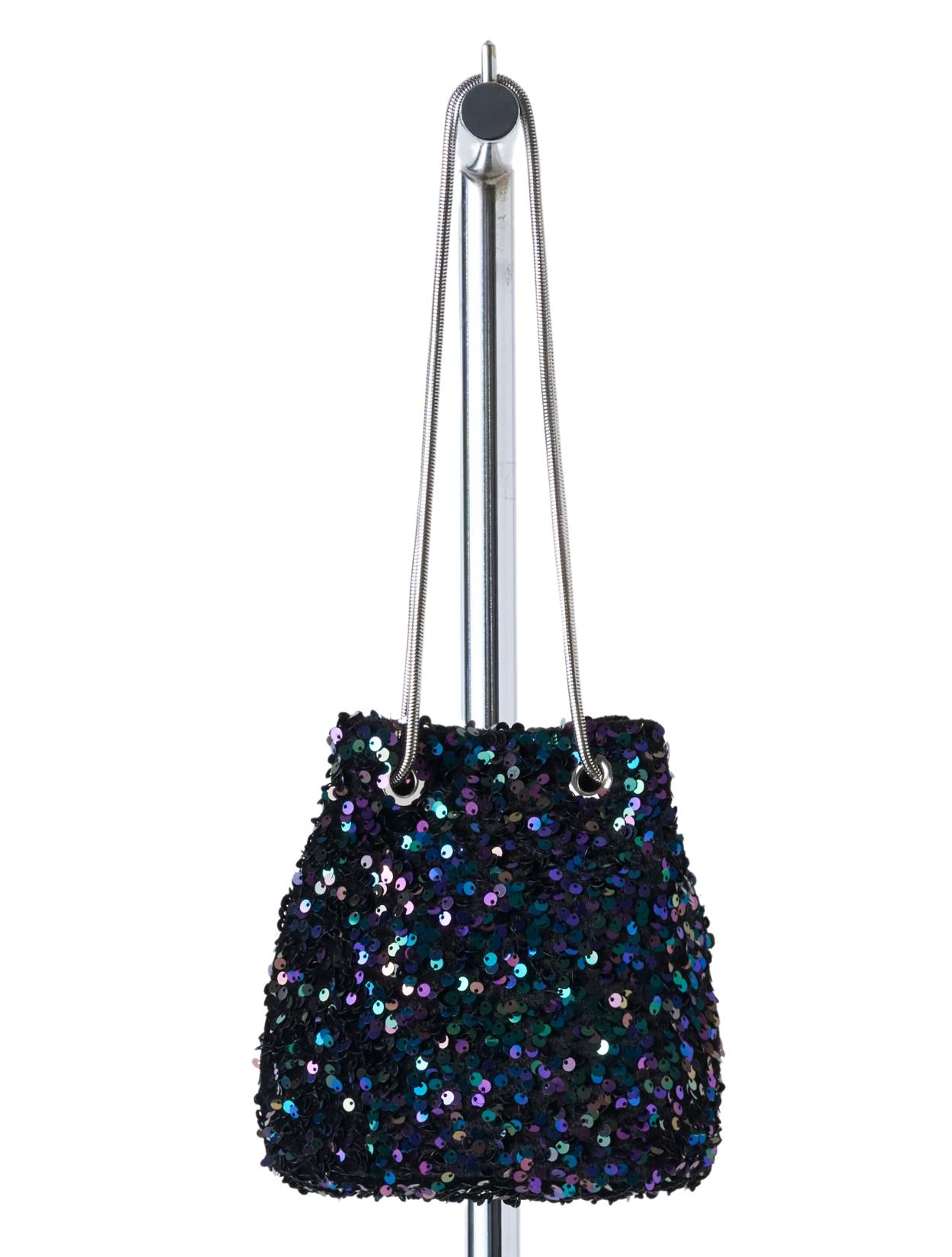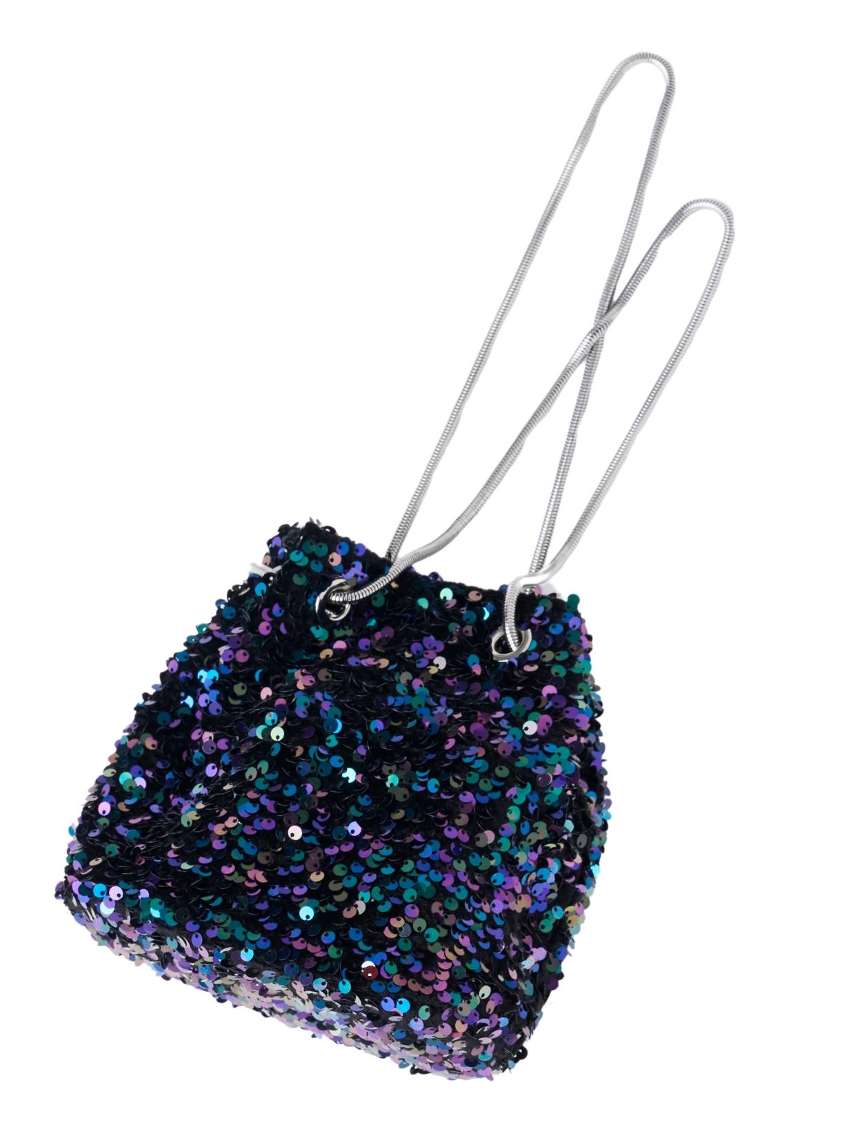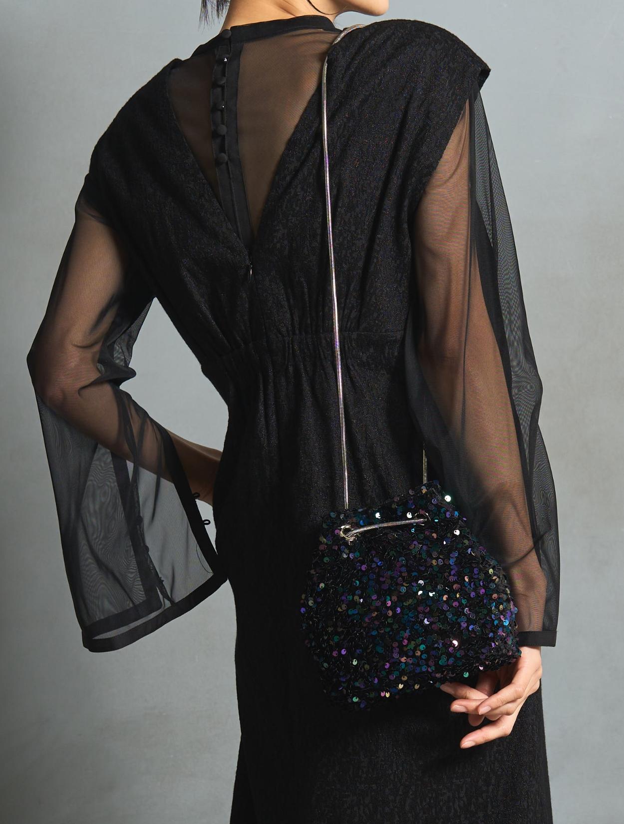 スパンコールがキラキラかわいいバッグ。パーティーバッグよりも若干カジュアルに持てるので、頑張りすぎていない印象が◎。 ハンドバッグにもショルダーバッグにもなります。