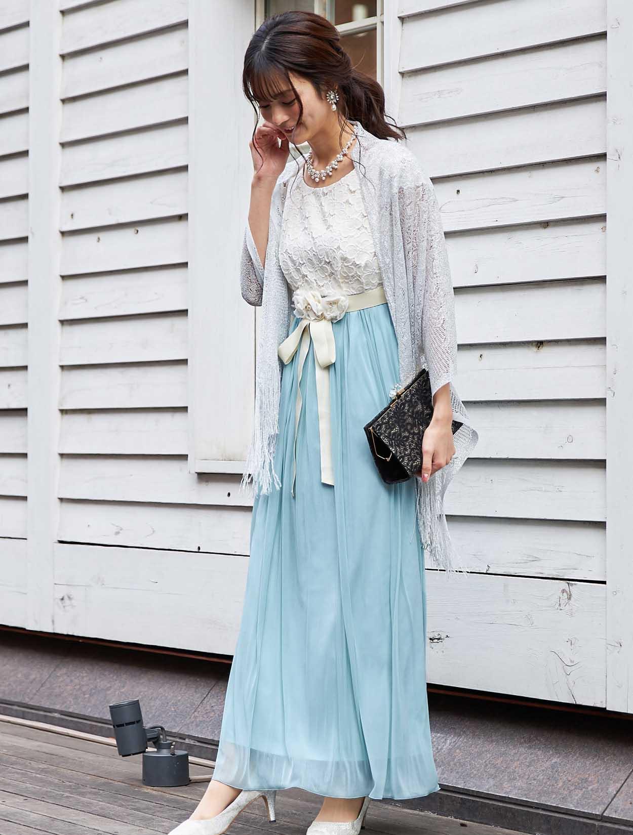 爽やかカラーのフラワーロングドレス