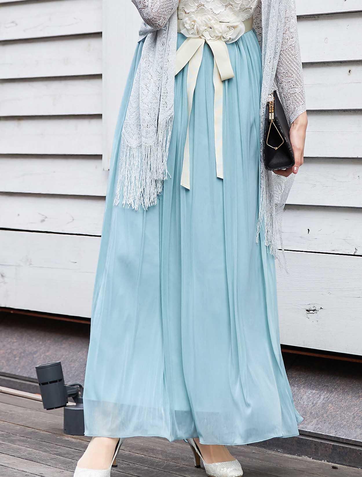 かかとまで長さがあるマキシ丈ですので、高めのヒールがおすすめです。