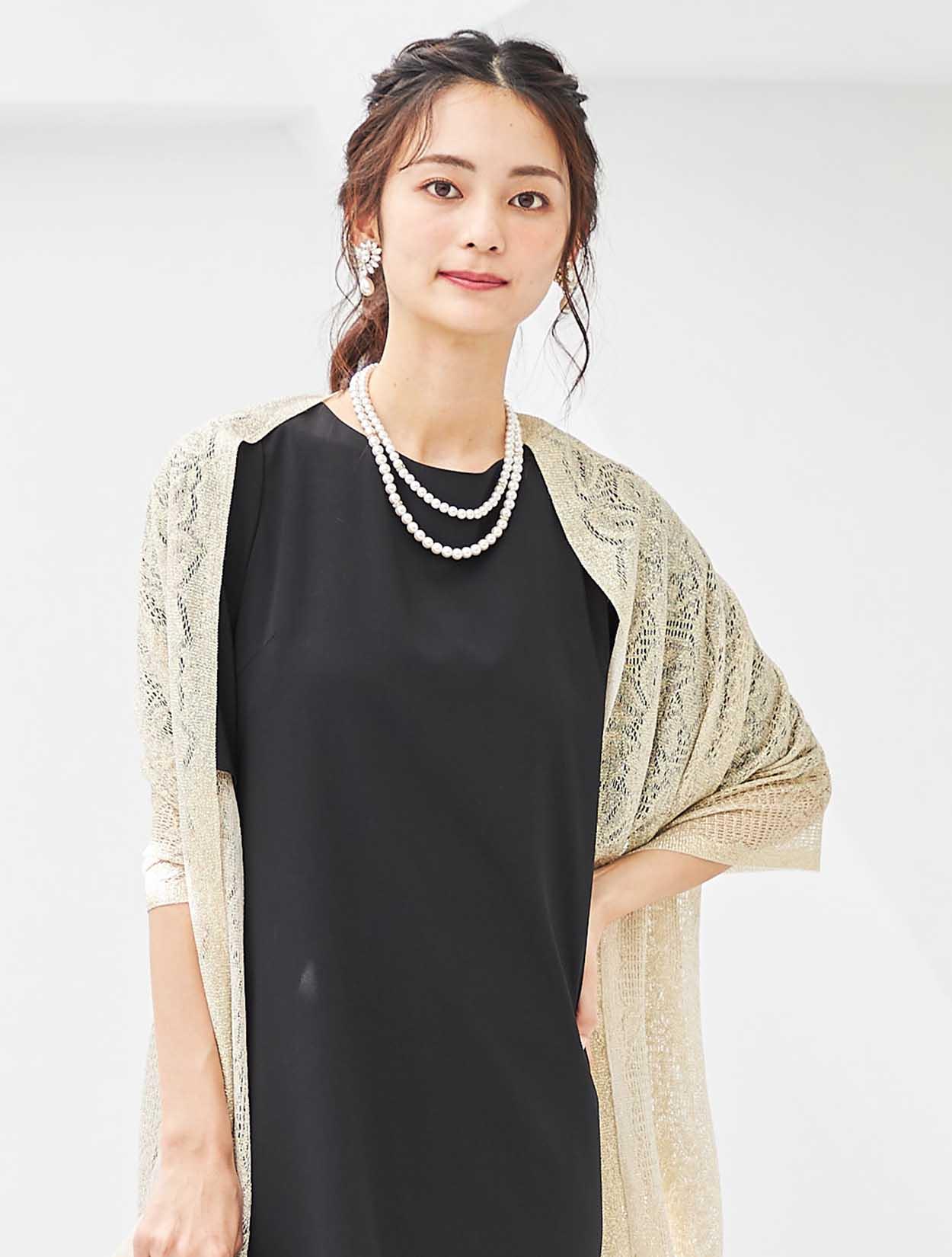 若干長めの2連ネックレスは、ブラックドレスに程よく掛かり品のある雰囲気に。