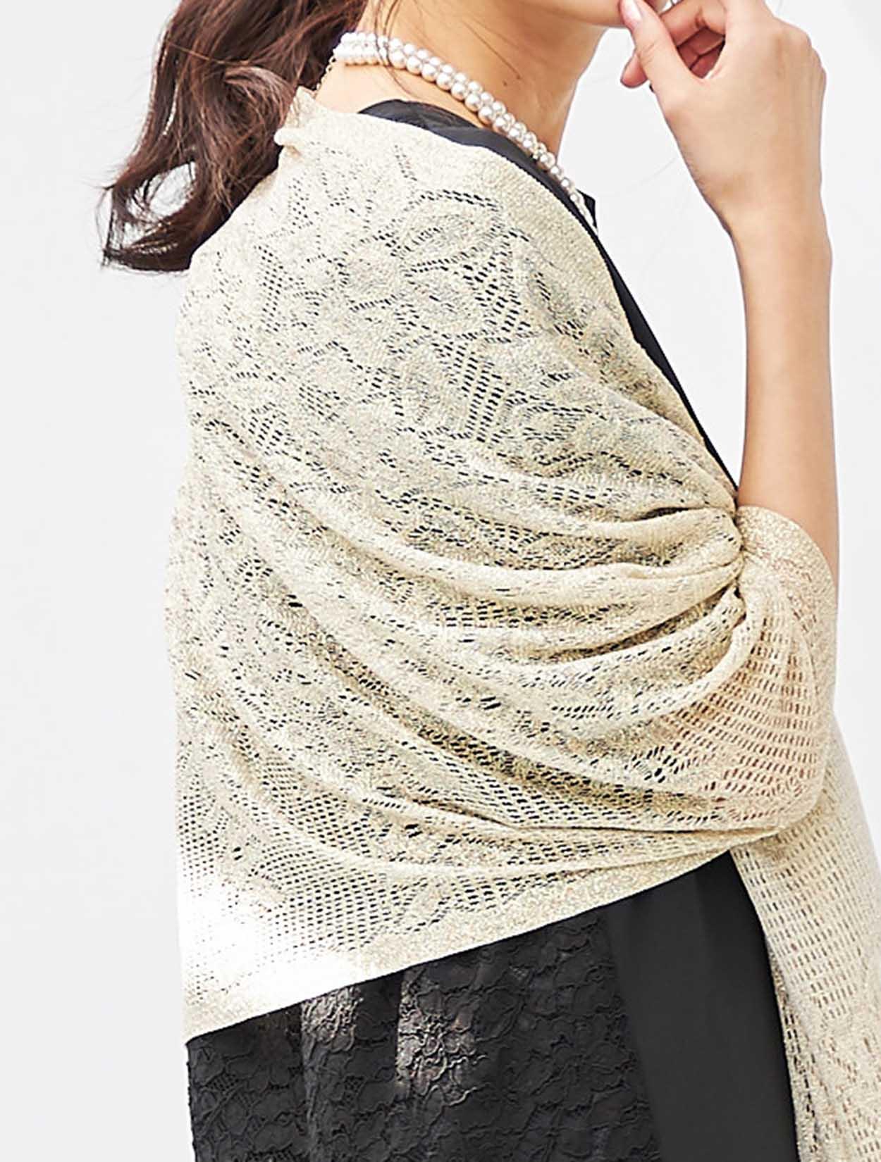 小物や羽織を全てゴールドで揃えると、華やかな大人コーデになります。