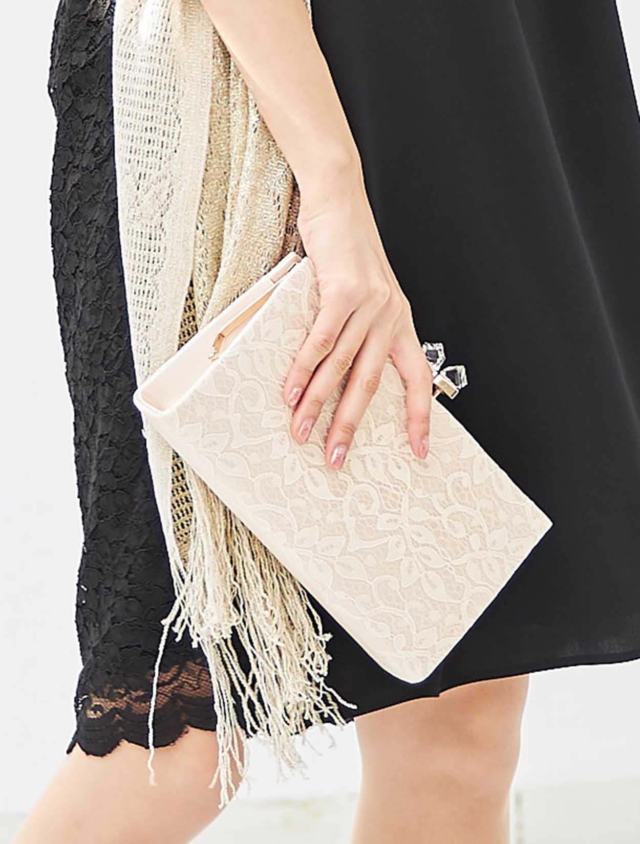 ※レースが使われているドレスは、アクセサリーやバッグのチェーンなど、引っかからない様ご注意ください。肩部分がレースのドレスは、バッグの肩掛けはご遠慮下さい。レースは繊細な素材なので、破れや傷みの原因になります。