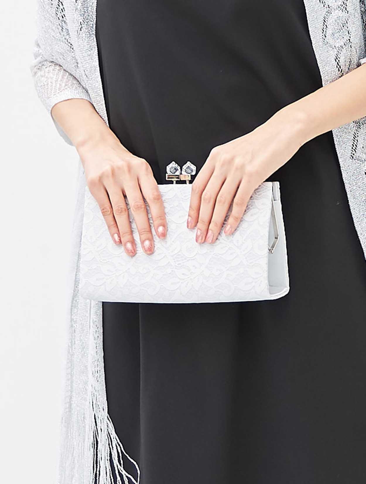 レースが施されたバッグは華やかかつ上品にブラックドレスを彩ります。