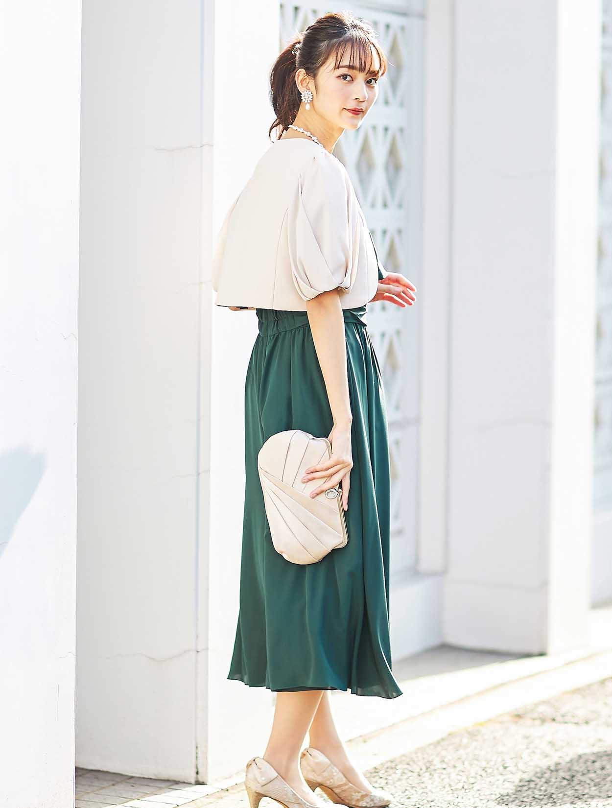 深いグリーンは大人の魅力を引き立たせてくれるカラー。マットな輝きが甘さ控えめでクールな印象に。