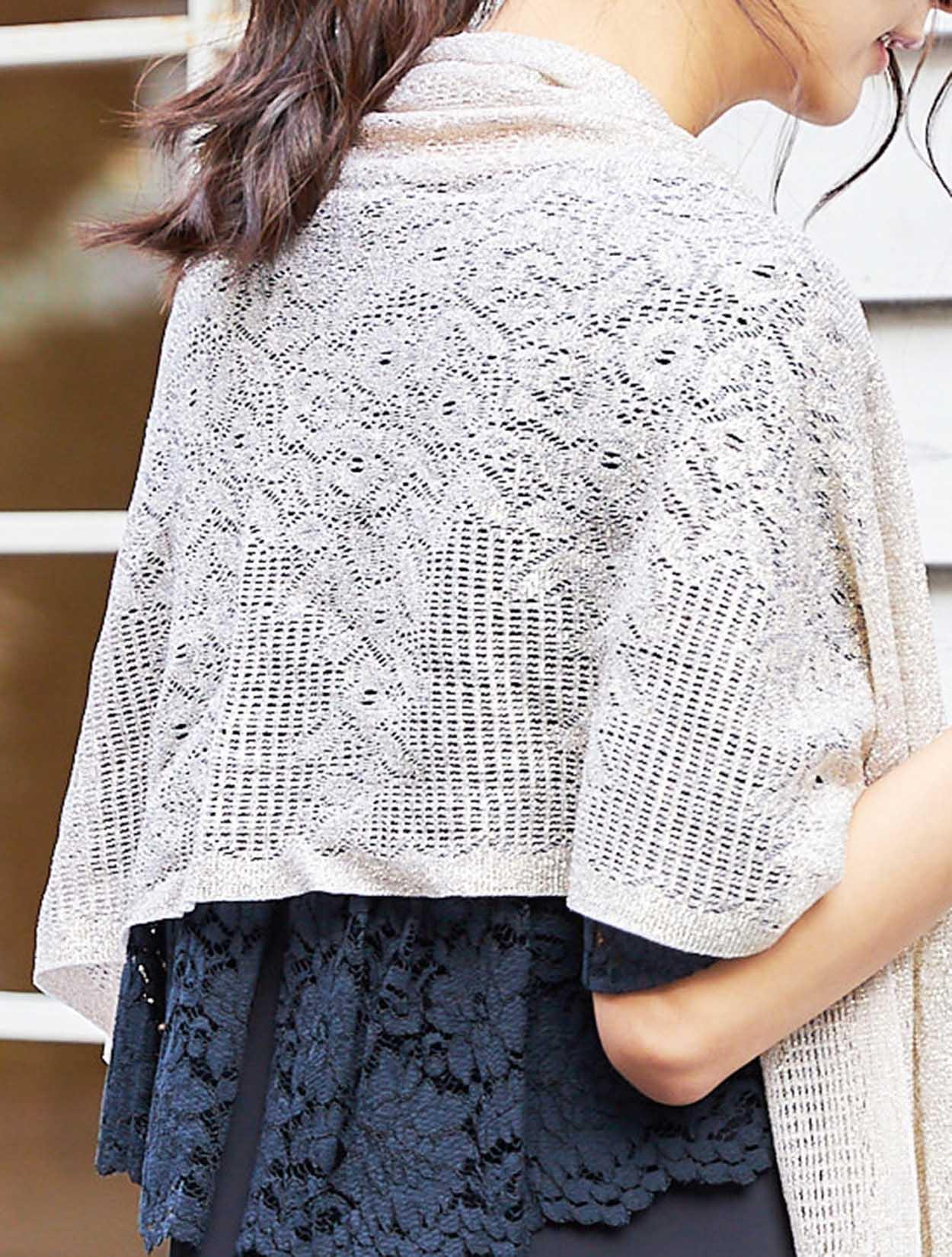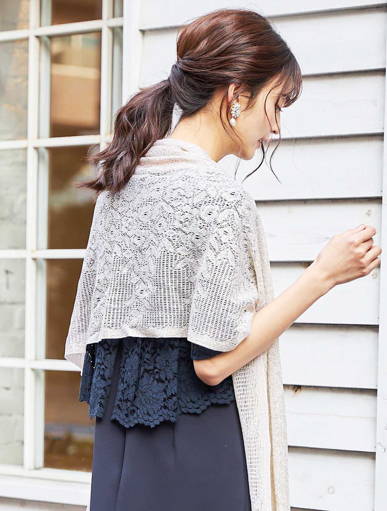 コールドに輝くショールを合わせた女性らしいスタイルです。