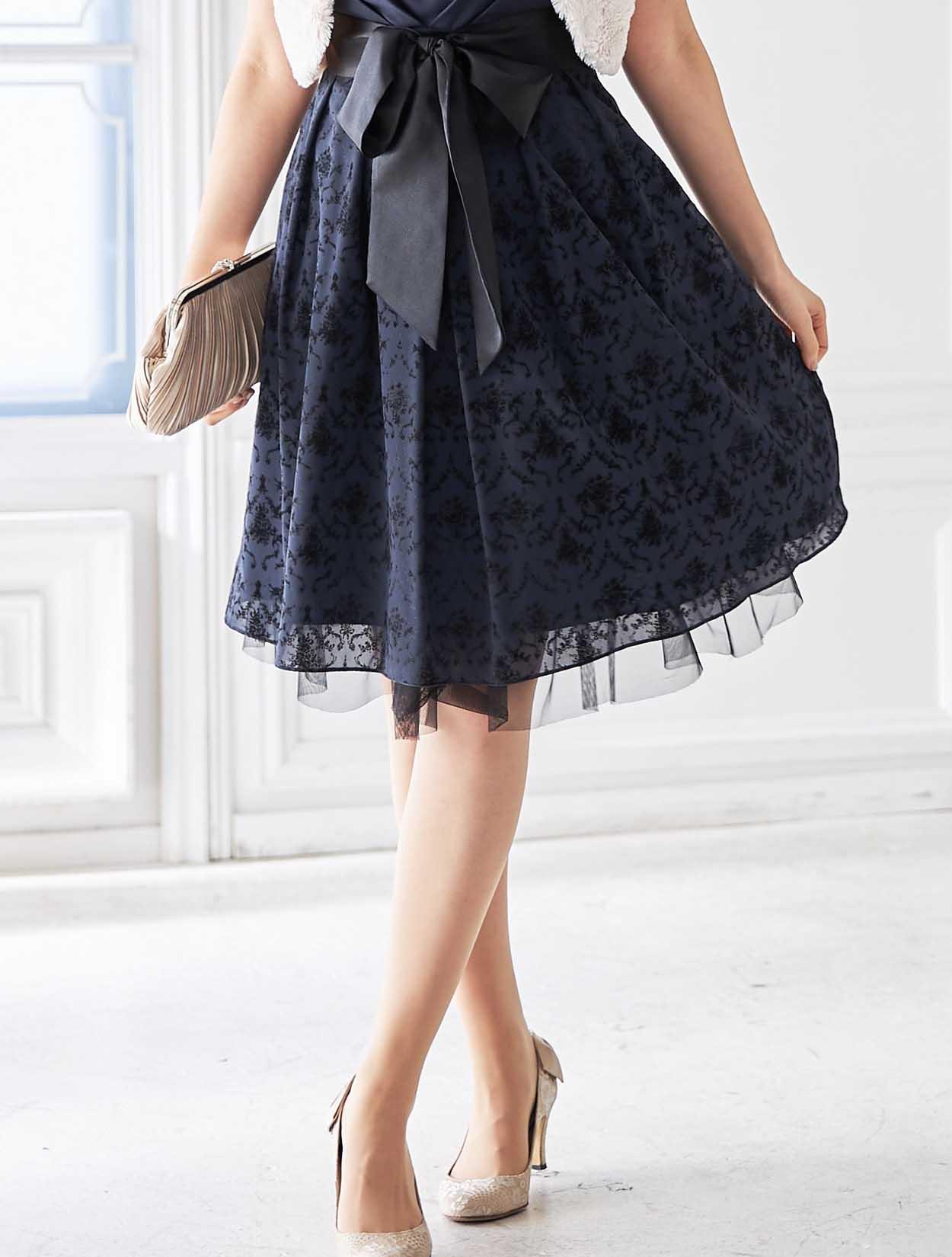 フィット&フレアのデザインでスタイルアップが叶うドレス。フワッと広がるスカートでダークカラーのドレスもエアリーな表情に。