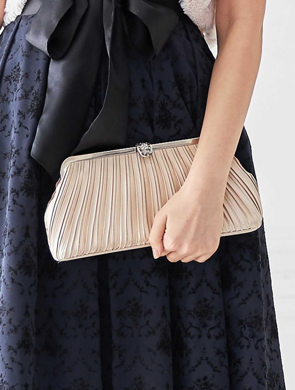 シンプルで上品なプリーツバッグを合わせて清楚感をプラス。