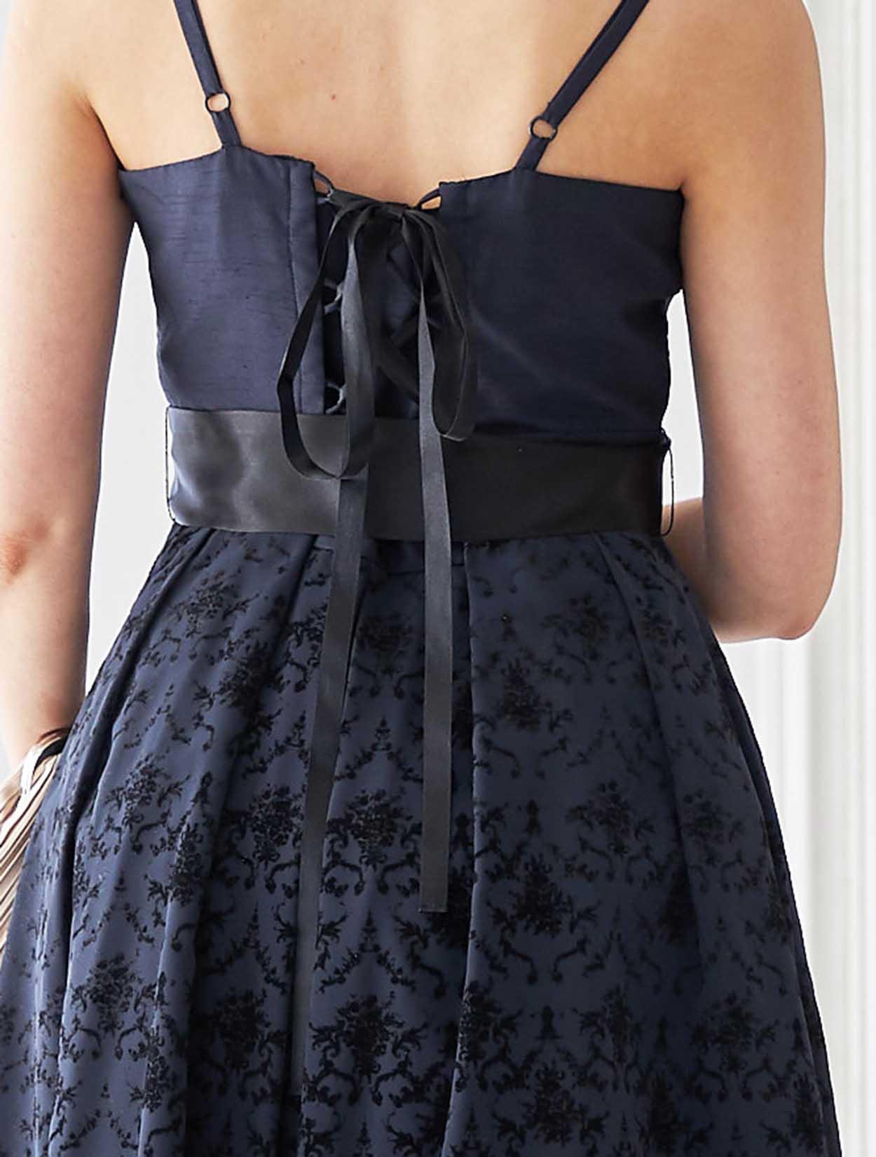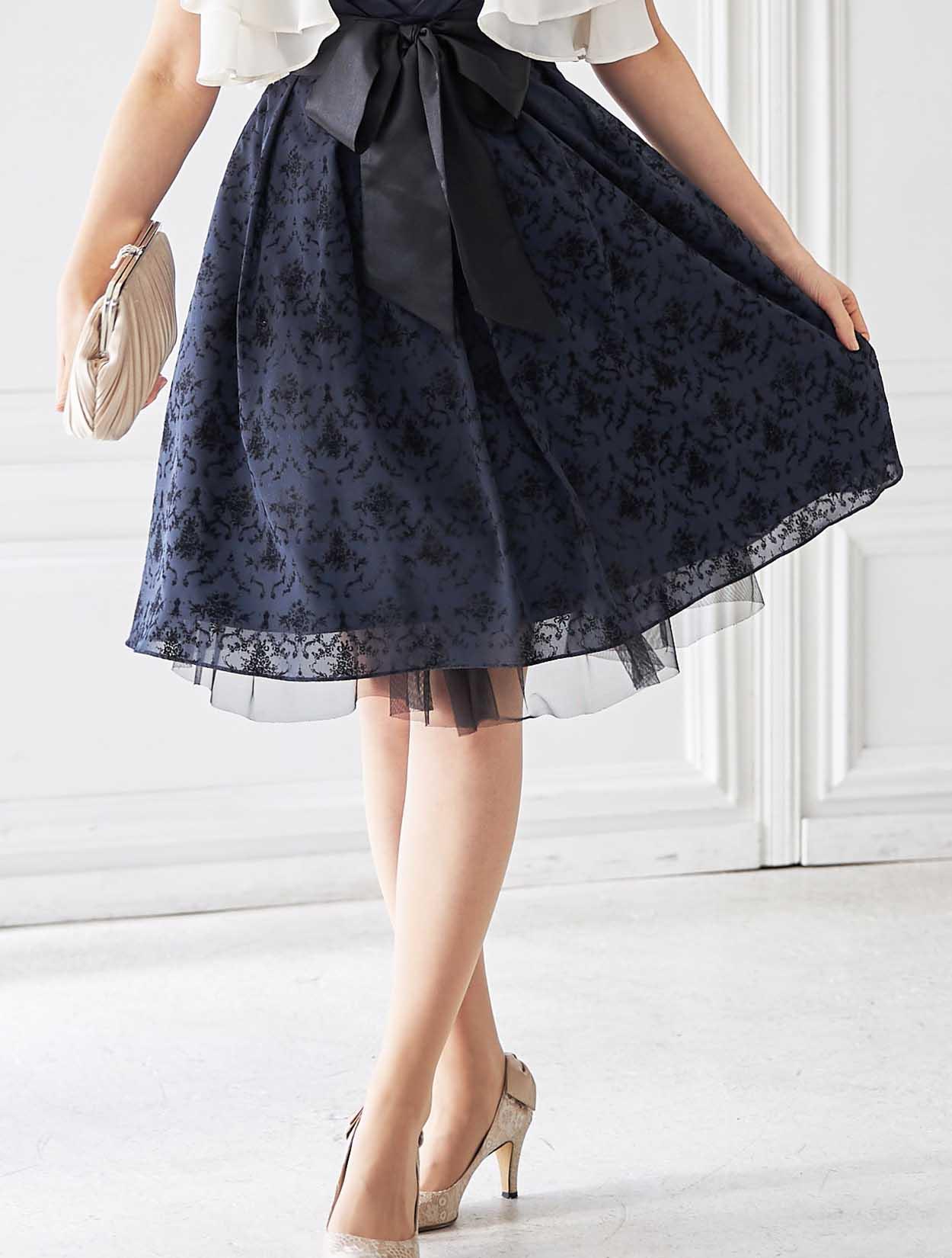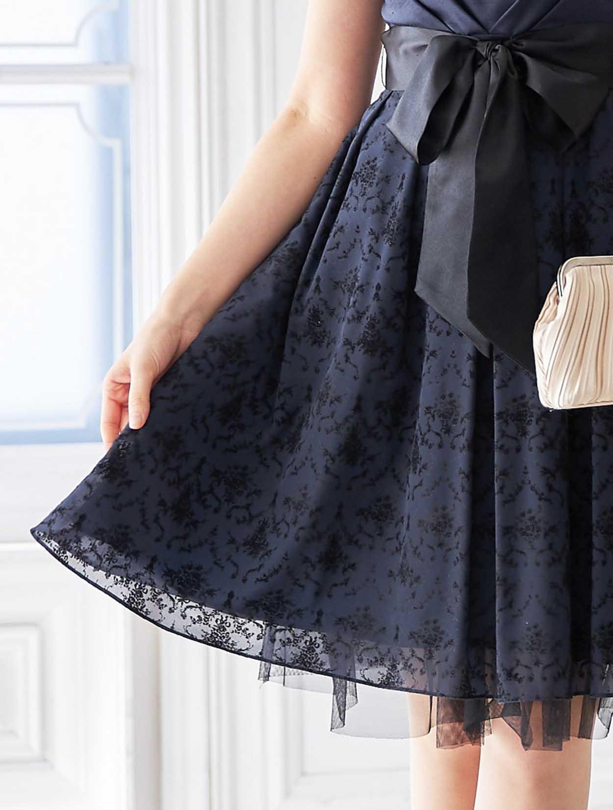 フィット&フレアのデザインでスタイルアップが叶うドレス。フワッと広がるスカートでダークカラーのドレスもエアリーな表情に。