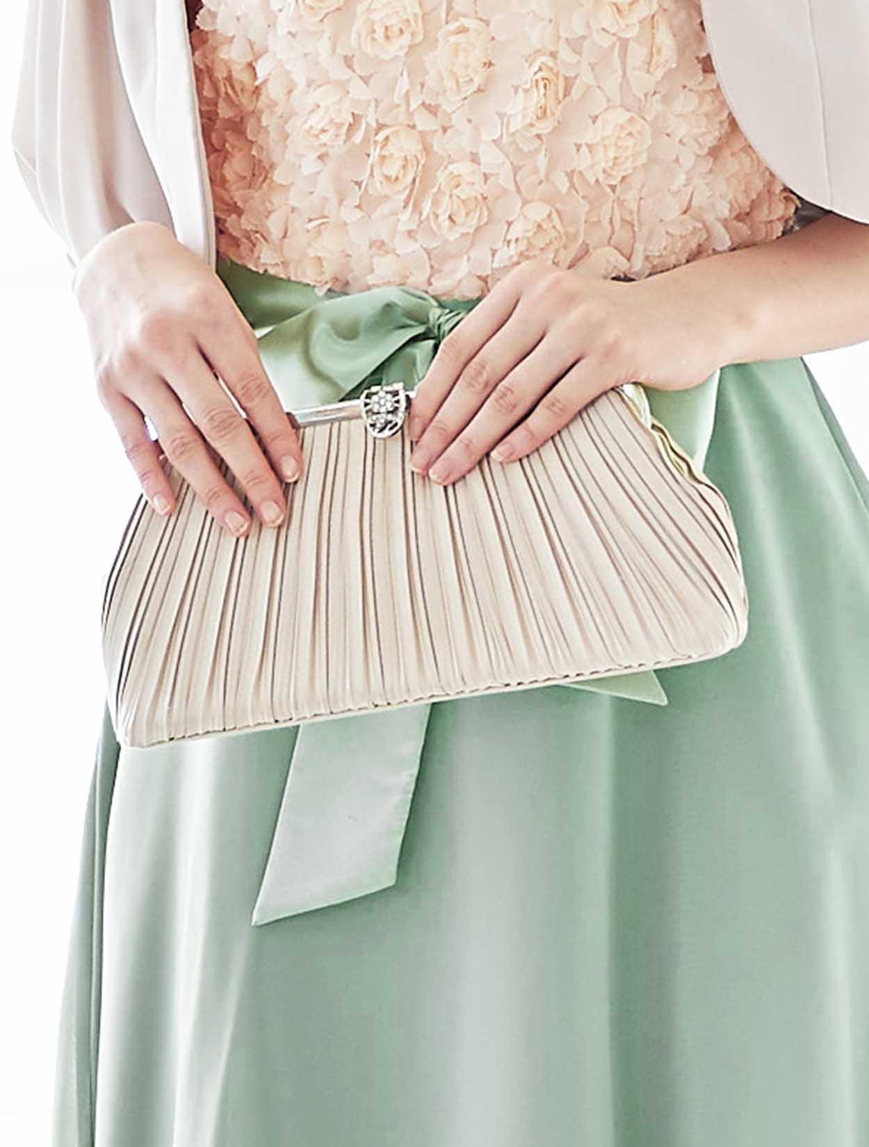 爽やかなグリーンにはベージュの小物で女性らしい優し気な印象に。