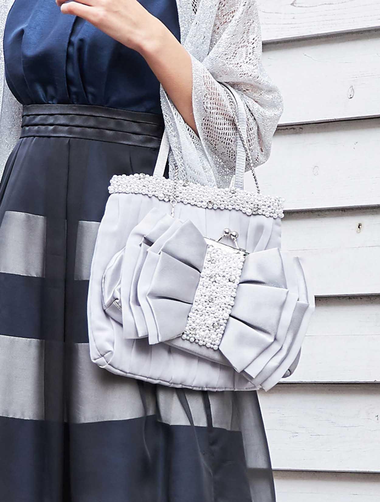 パールが施された華やかなバッグは、サブバッグ付きでお荷物多い方にもおすすめです。