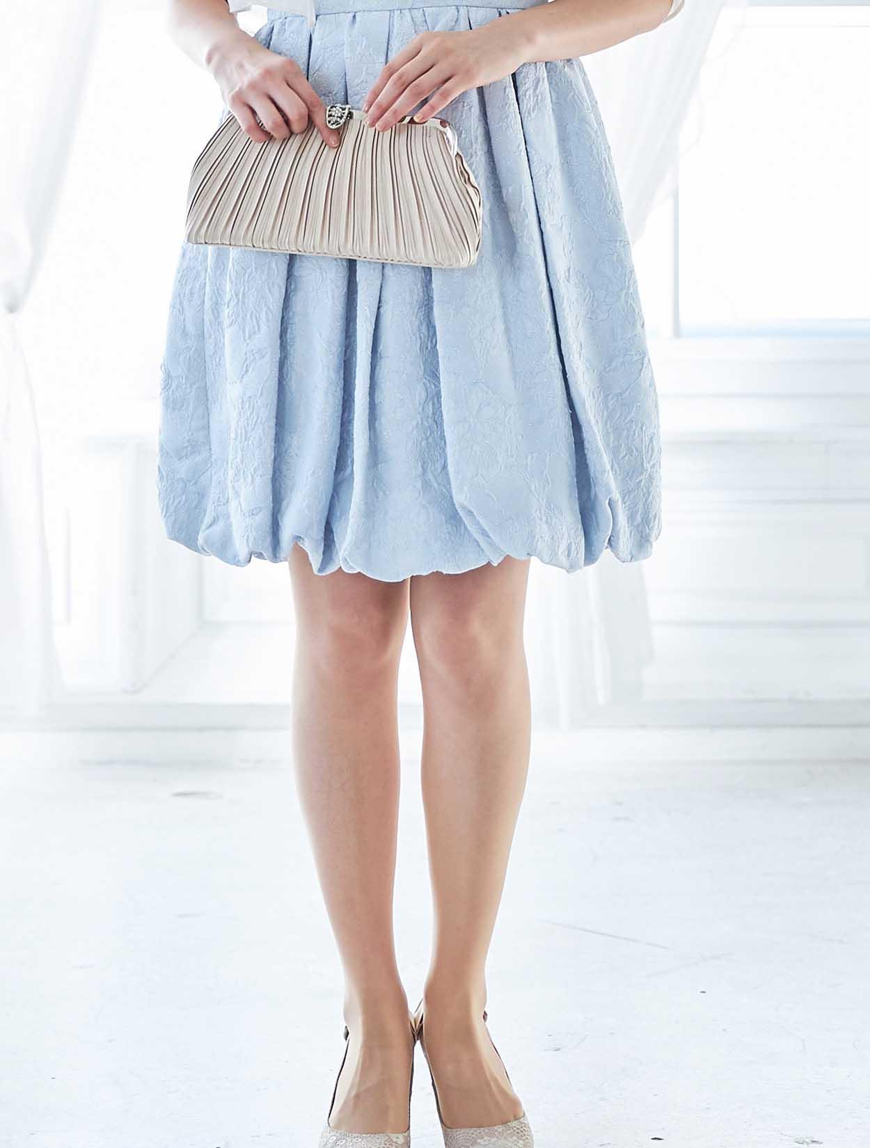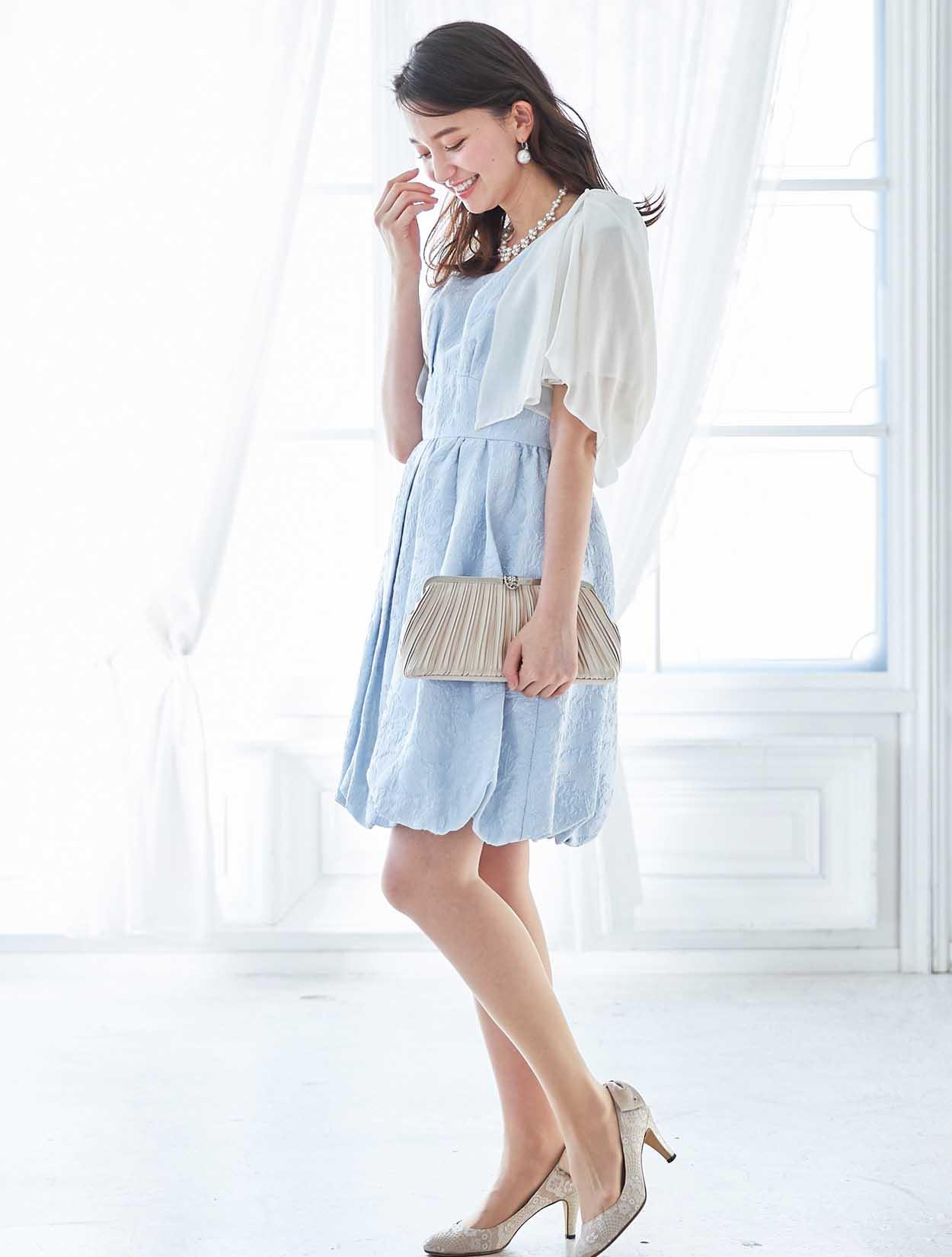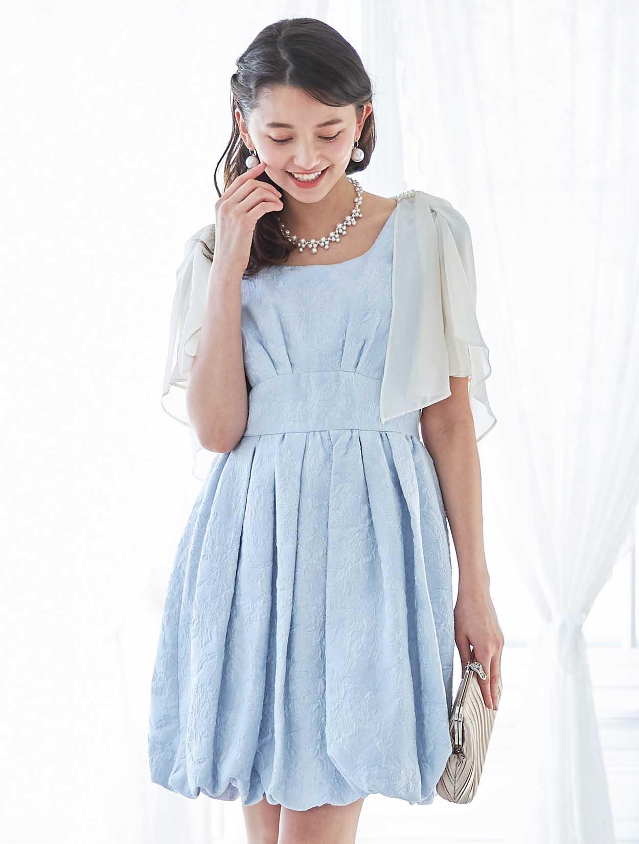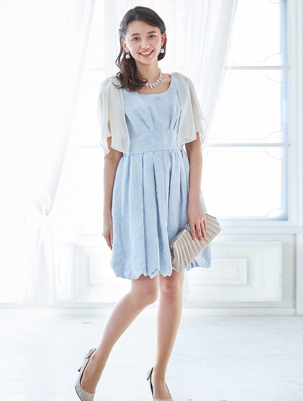 フレッシュなバルーン裾がポイントのサックスドレス
