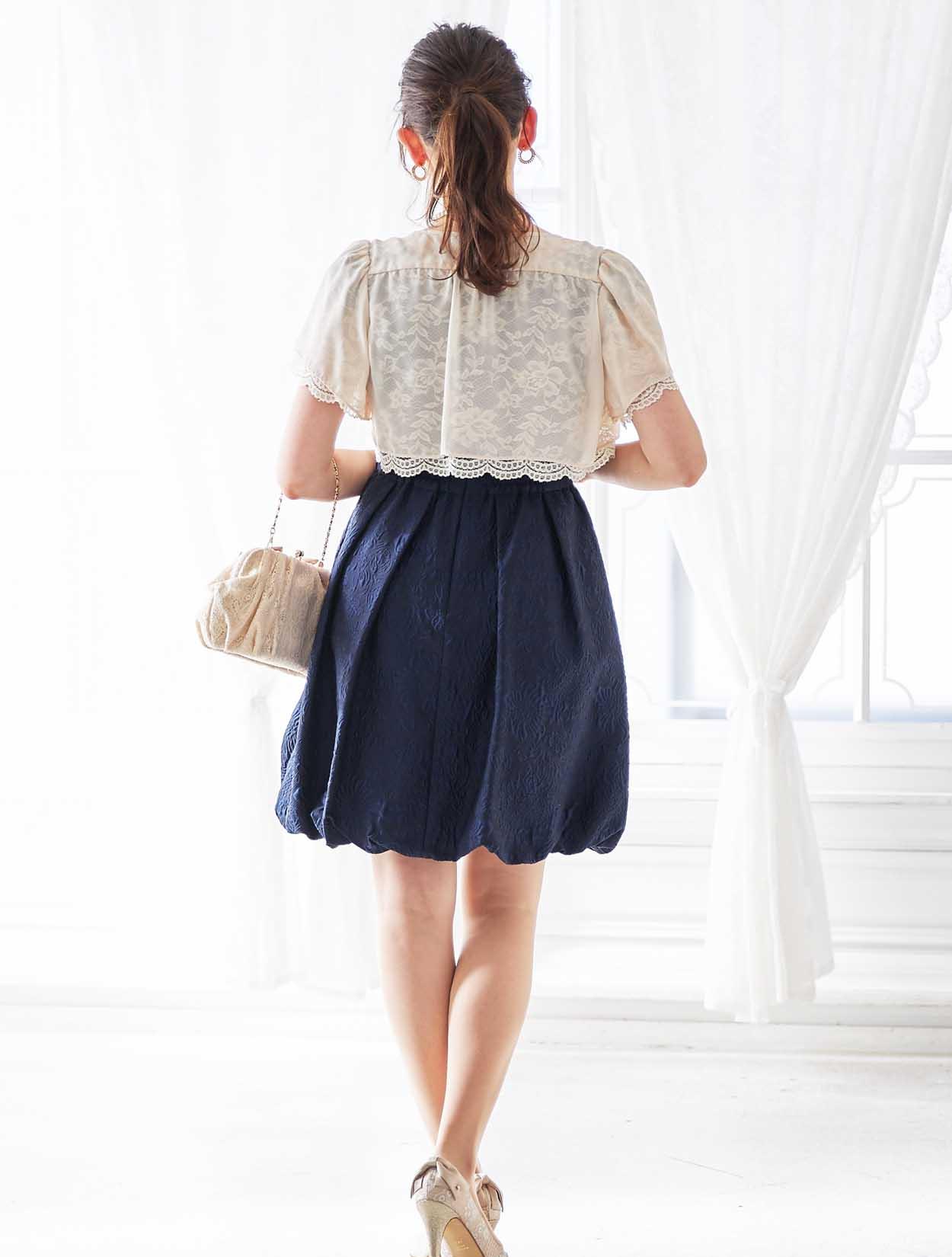 ベージュレースのボレロを合わせた可憐な印象のコーディネート。