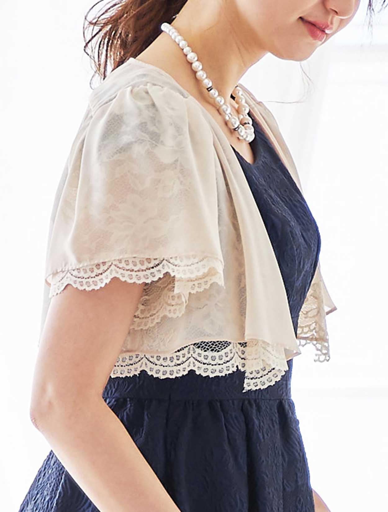 ボレロはリバーシブル仕様で、レースとシフォンをお好みで着ていただけます。