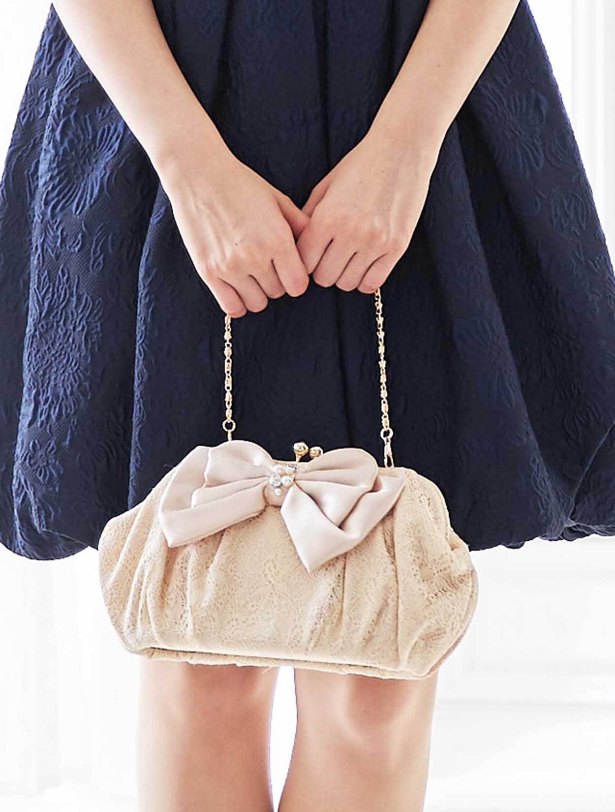 ※レースが使われているドレスは、アクセサリーやバッグのチェーンなど、引っかからない様ご注意ください。肩部分がレースのドレスは、バッグの肩掛けはご遠慮下さい。レースは繊細な素材なので、破れや傷みの原因になります。