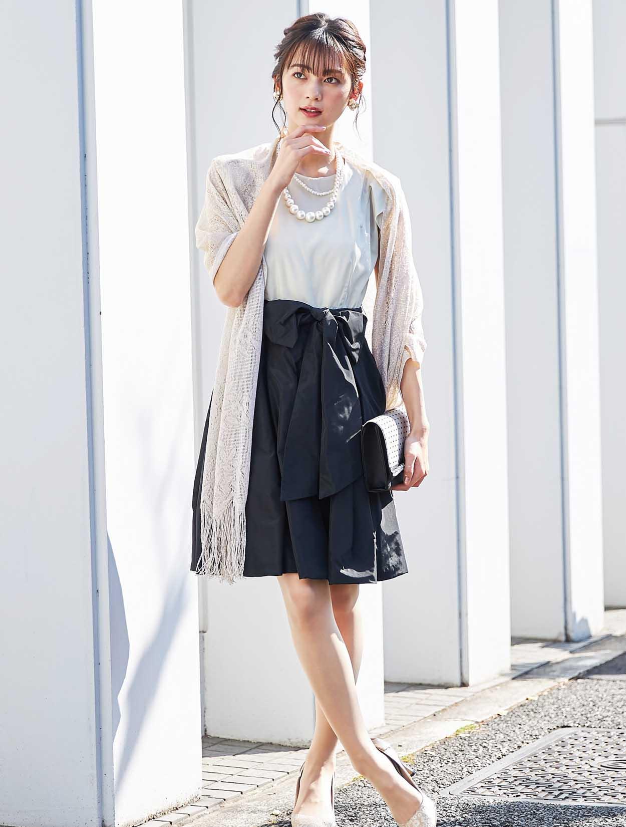 程良い光沢とシャリ感がある、メモリータフタという形状記憶型の生地を使用。バルーンスカートのラインがキレイに決まります。