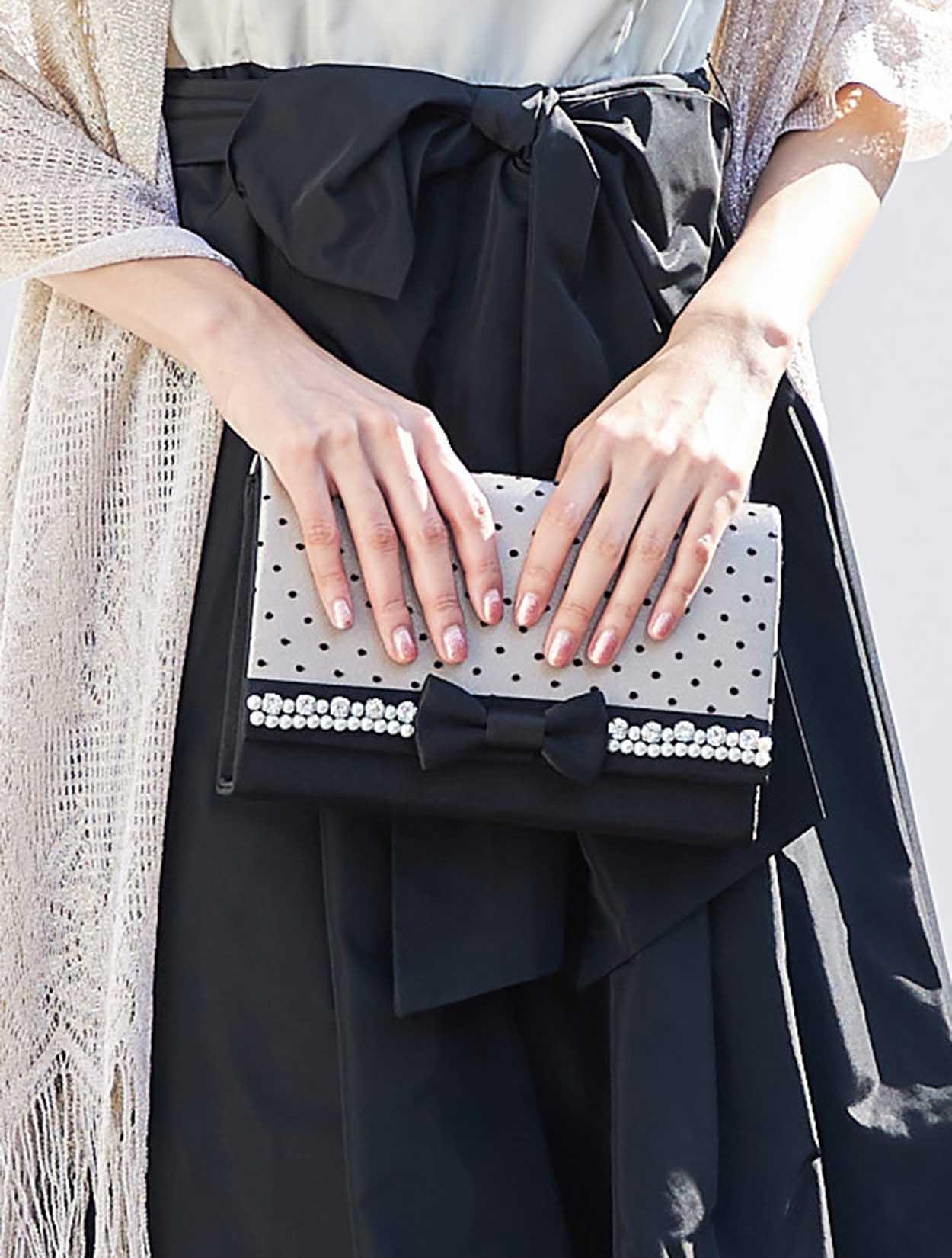 ドットチュールのバッグがクラシカルな印象のドレスにぴったりです。