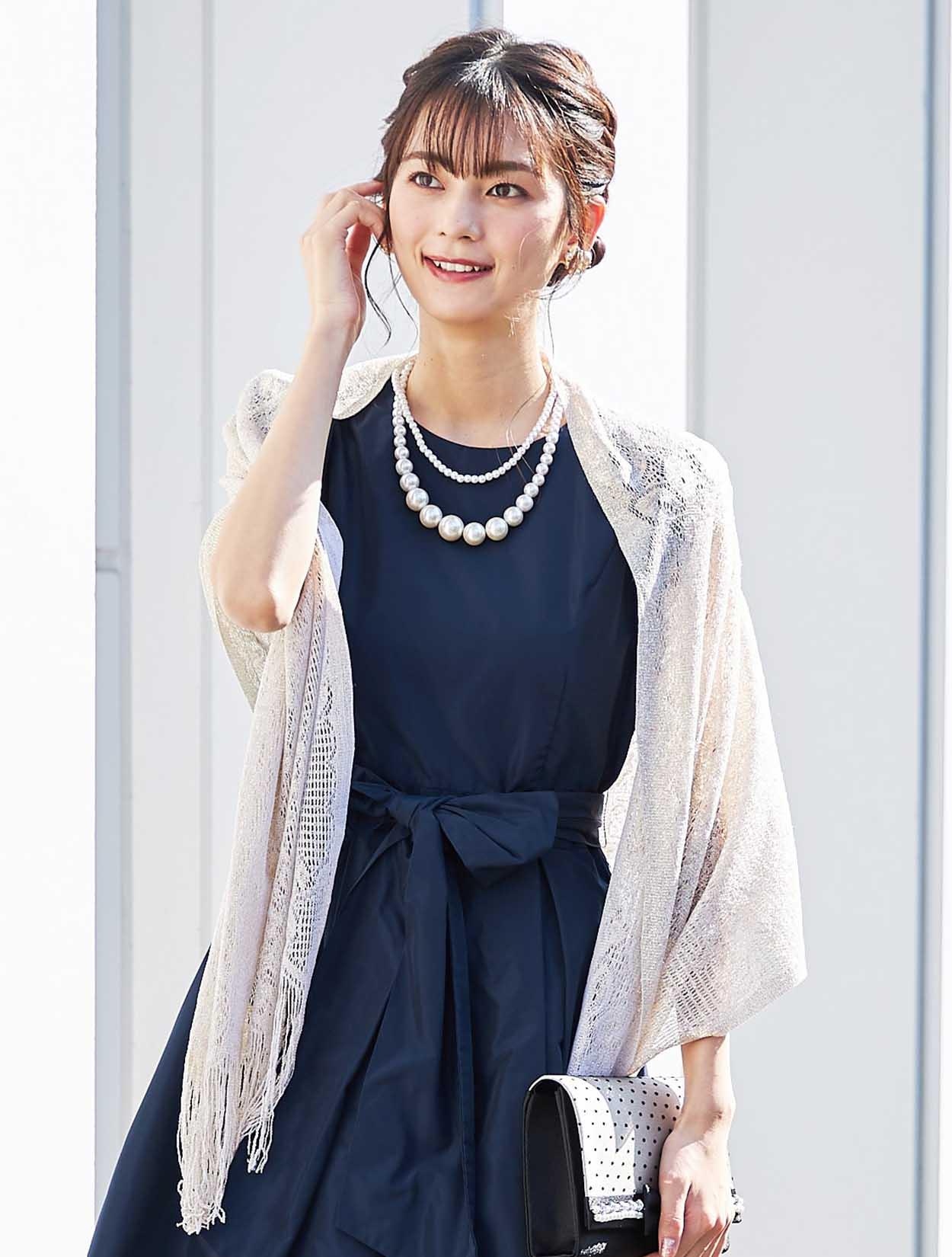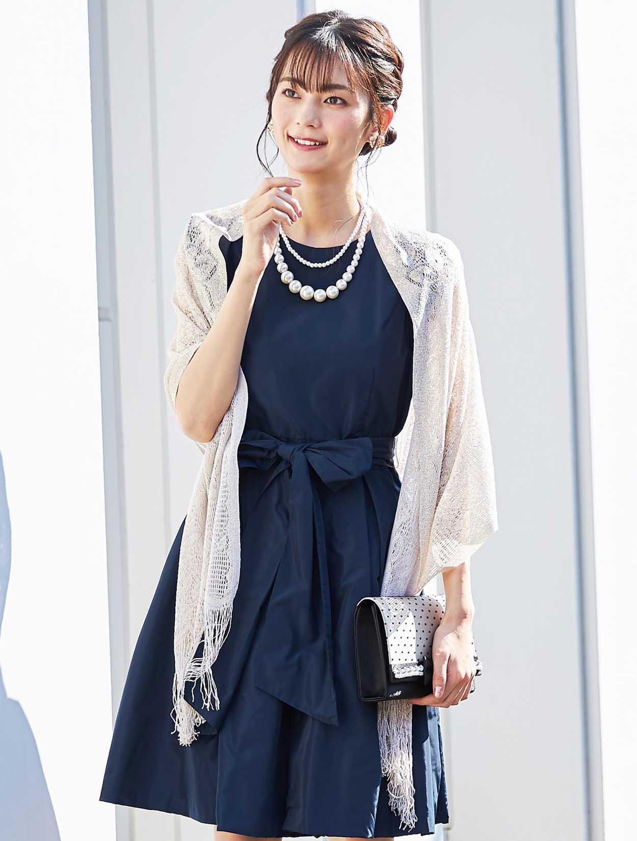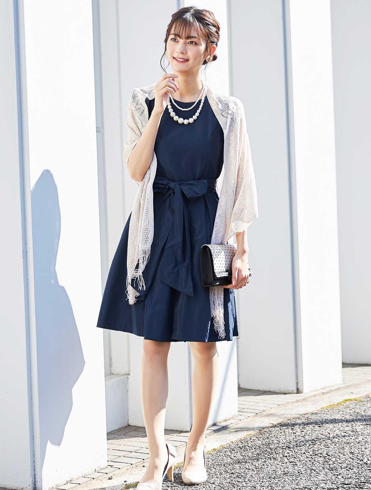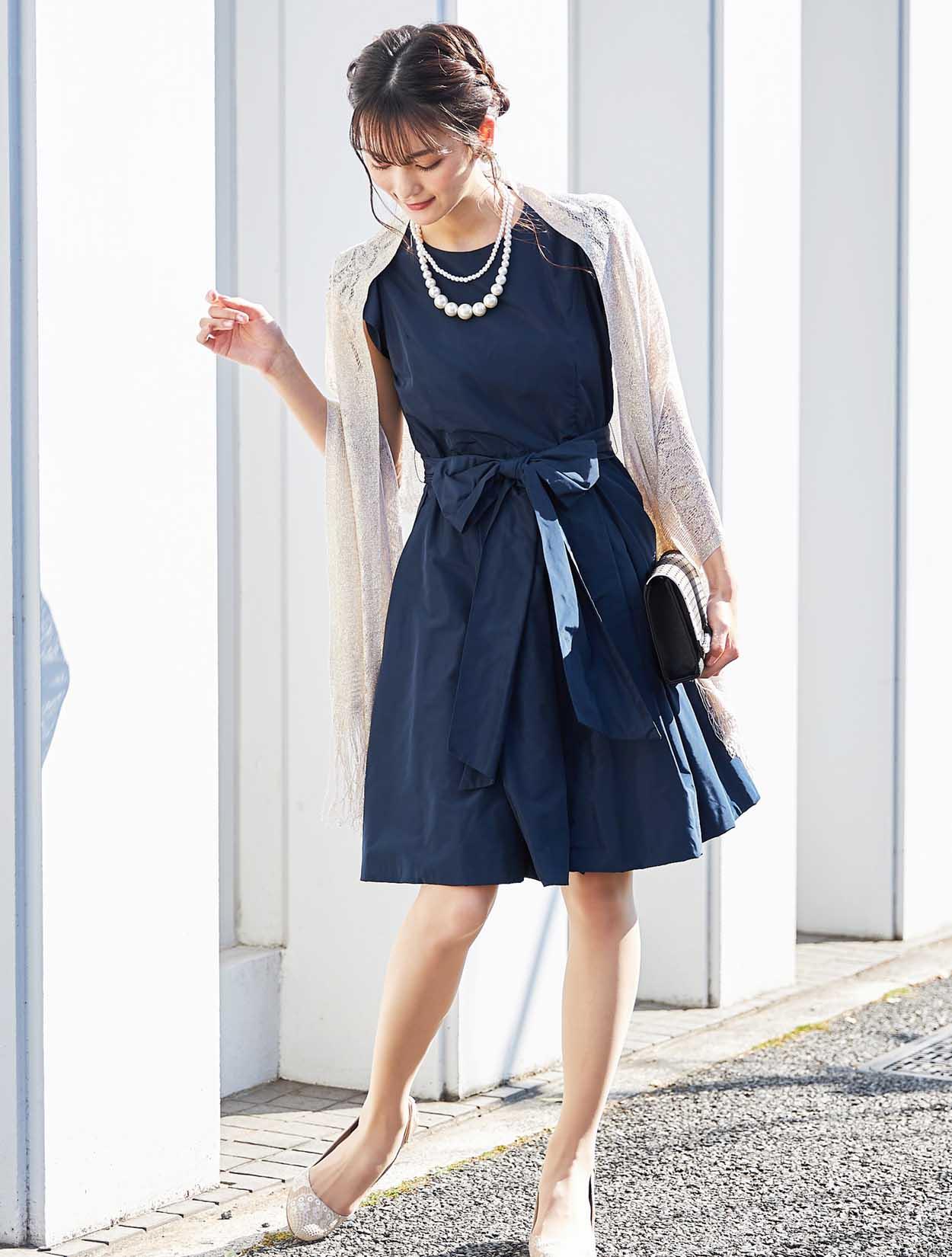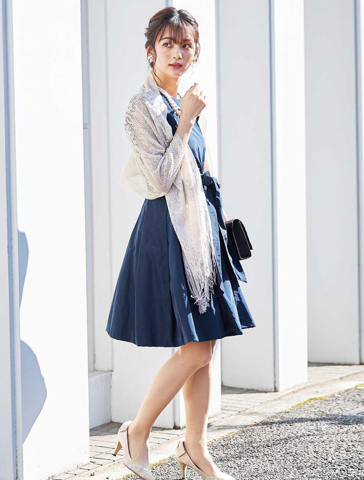 どんなシーンでも間違いないネイビー。初めてドレスを着る方にも着やすい安心カラーです。フェイスラインも上品な表情に。