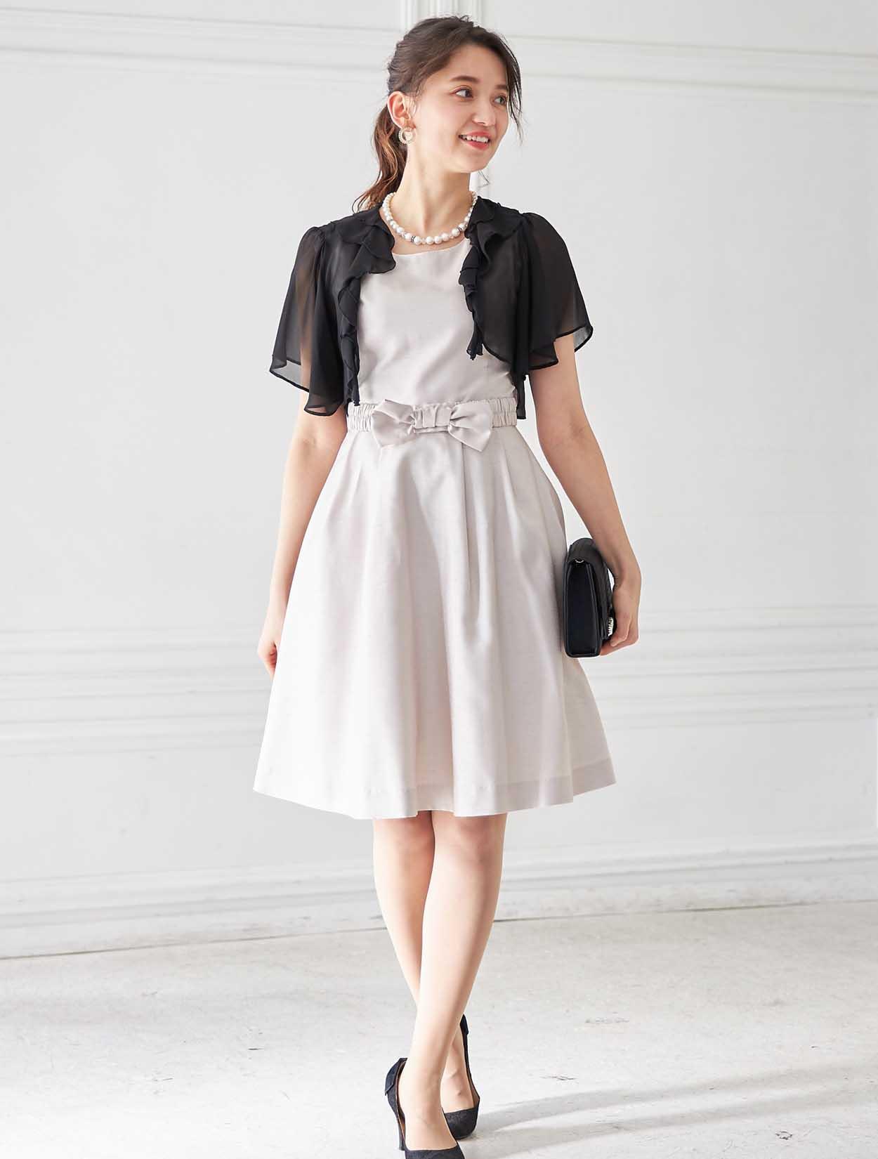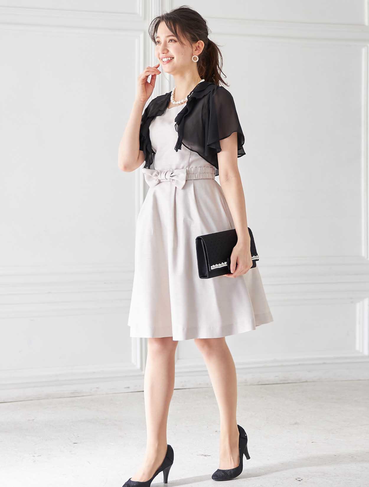 キュッと締まったウエストにフワッと広がるスカートで、メリハリあるスタイルを叶えます。ウエストのリボンでシンプルなドレスも華やかに。