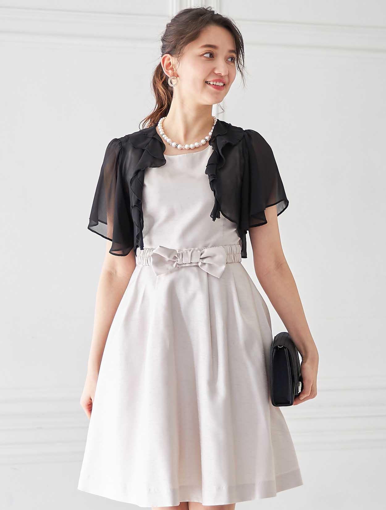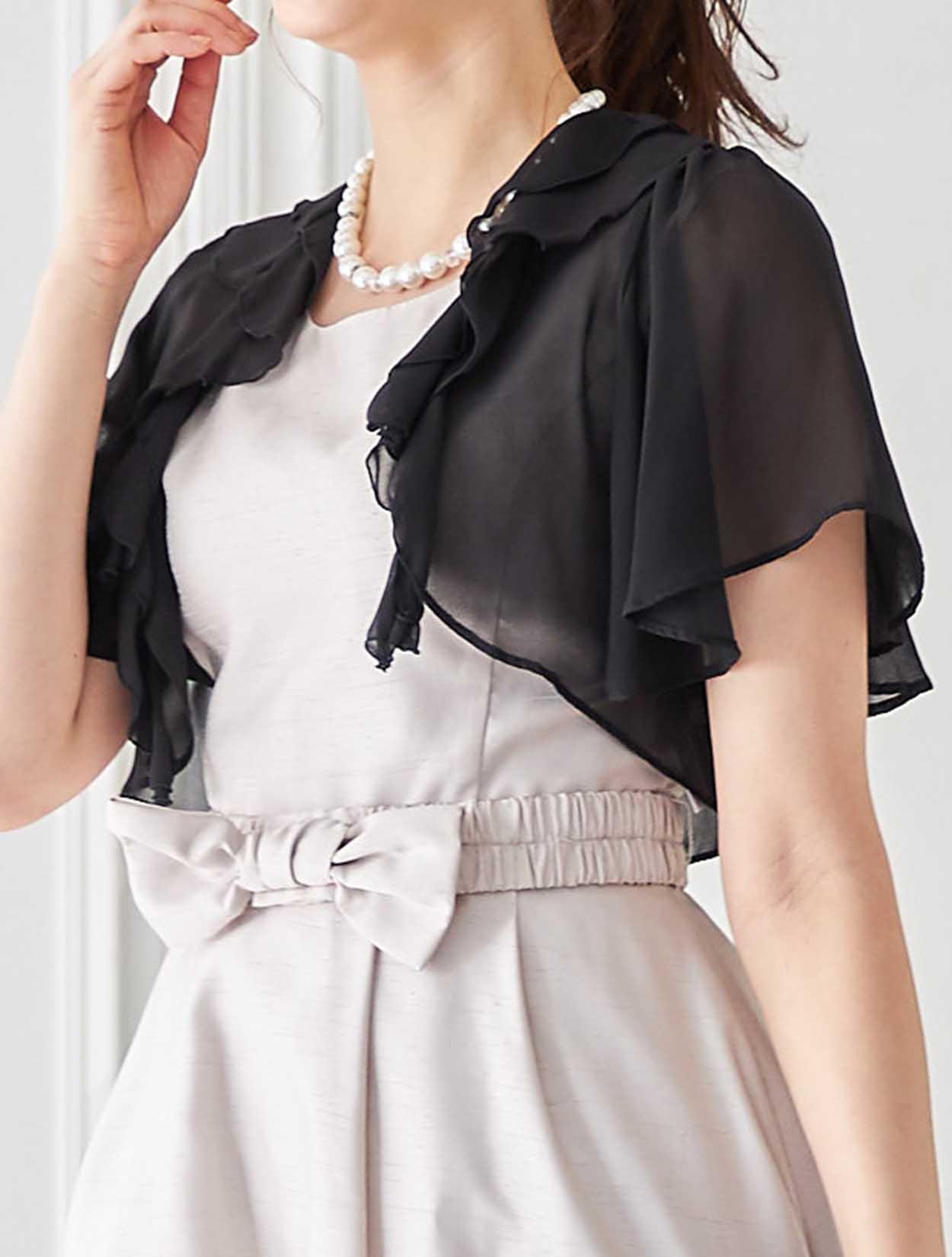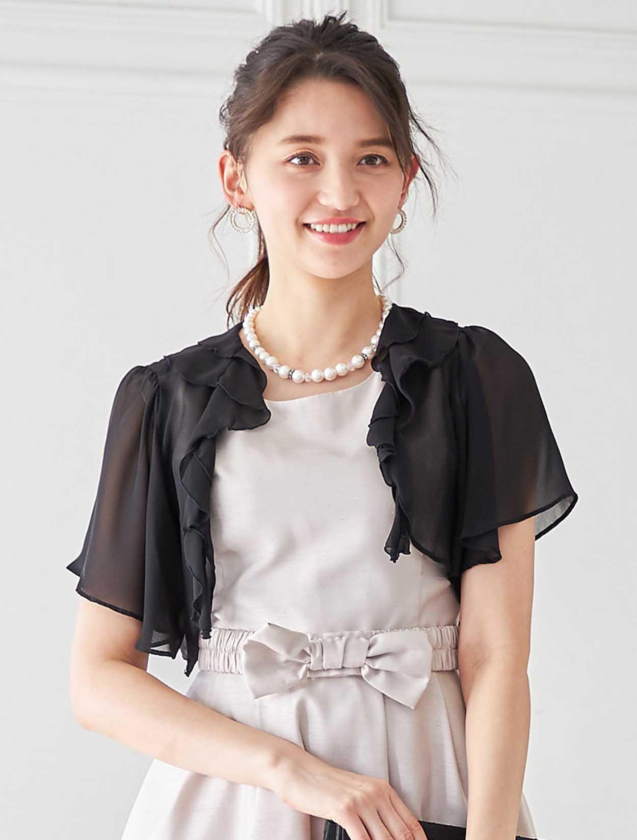 フェイスラインを華やかに彩るフリルのボレロがポイントのコーディネートです。