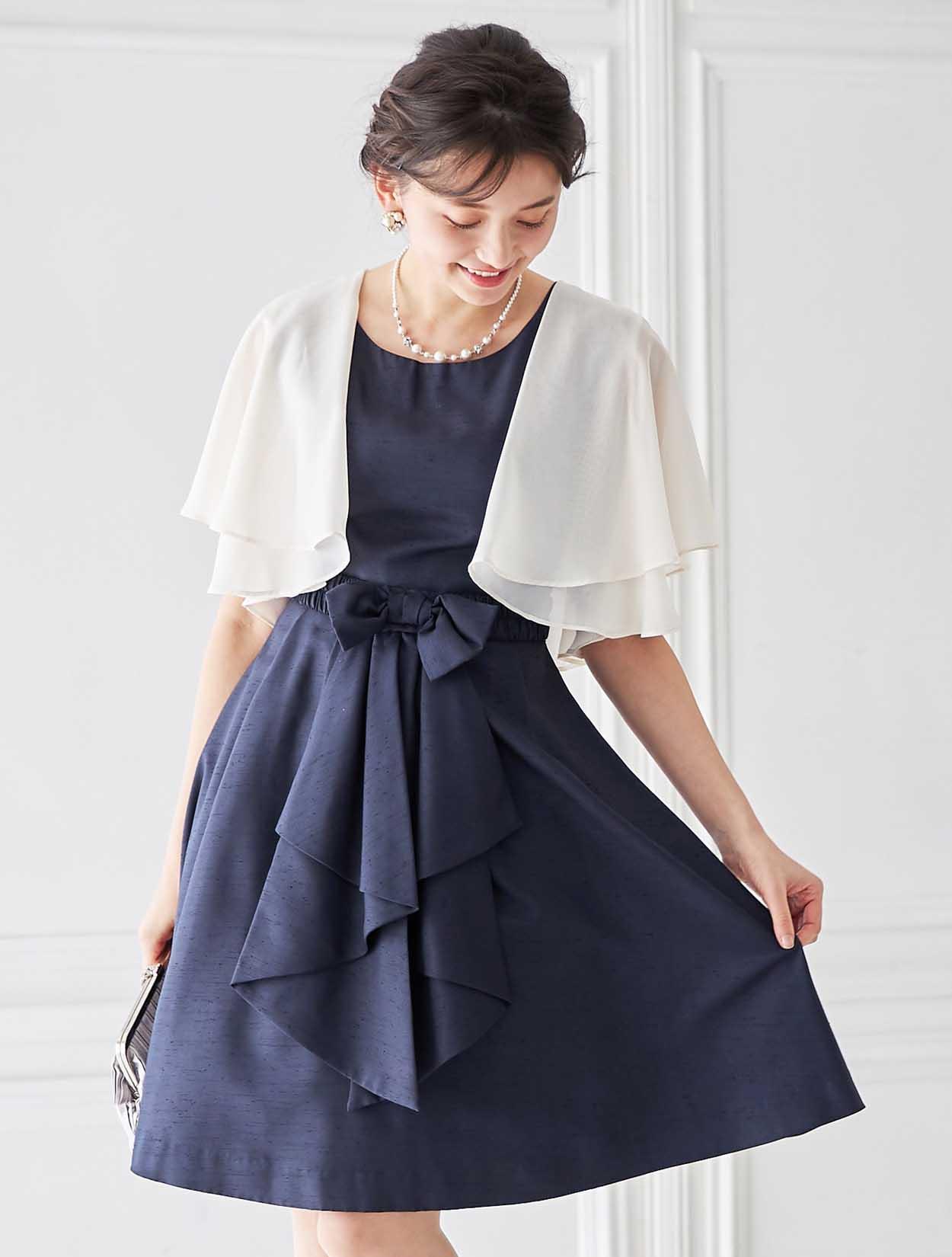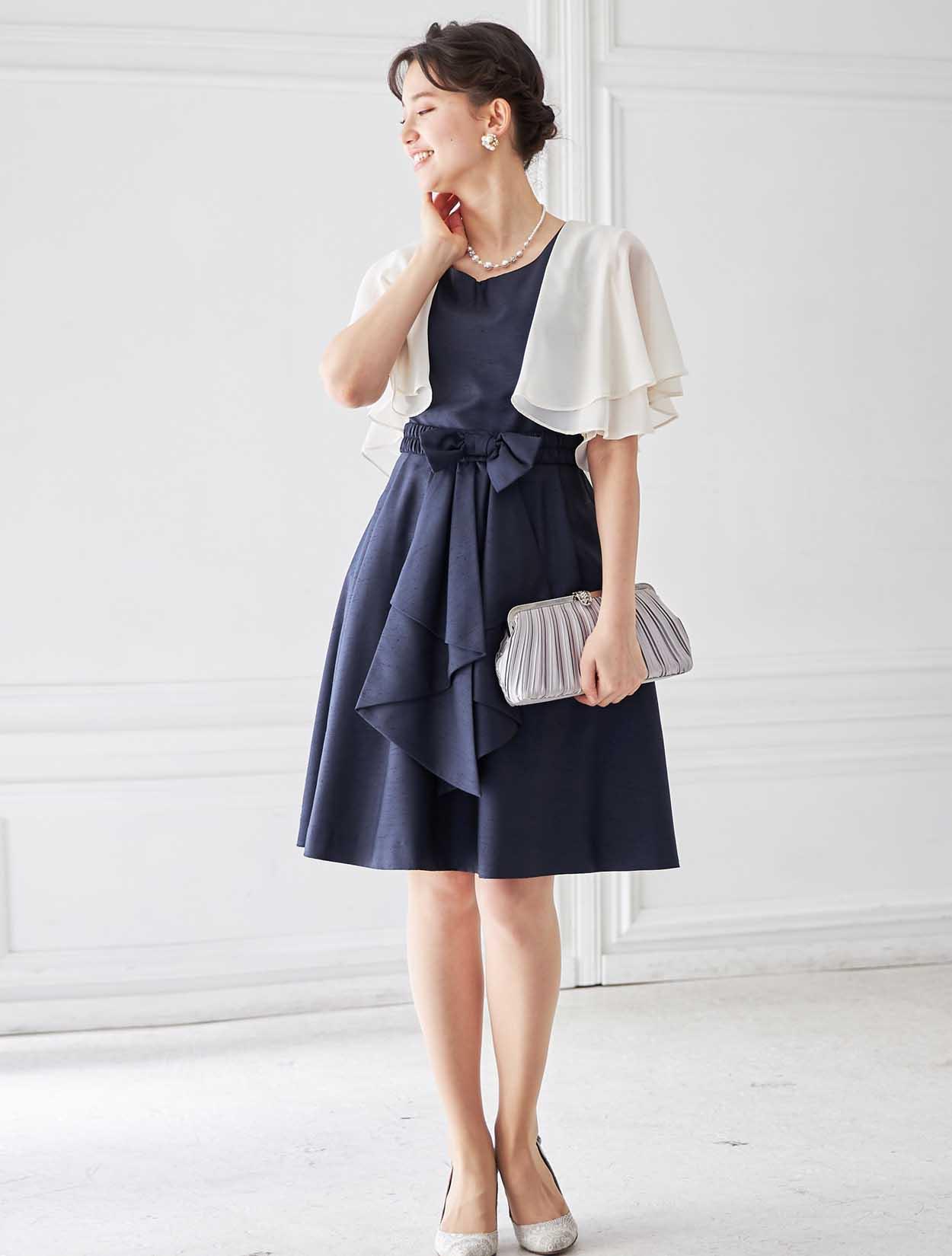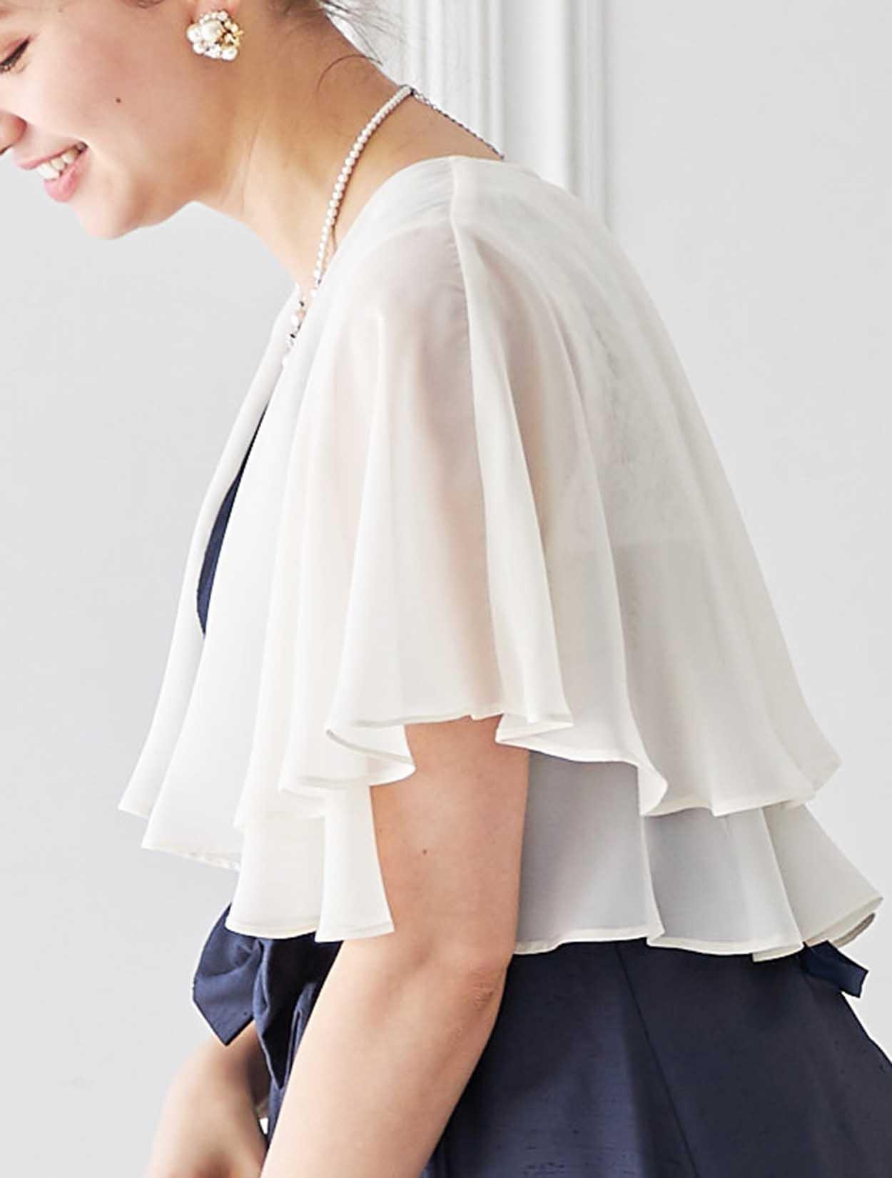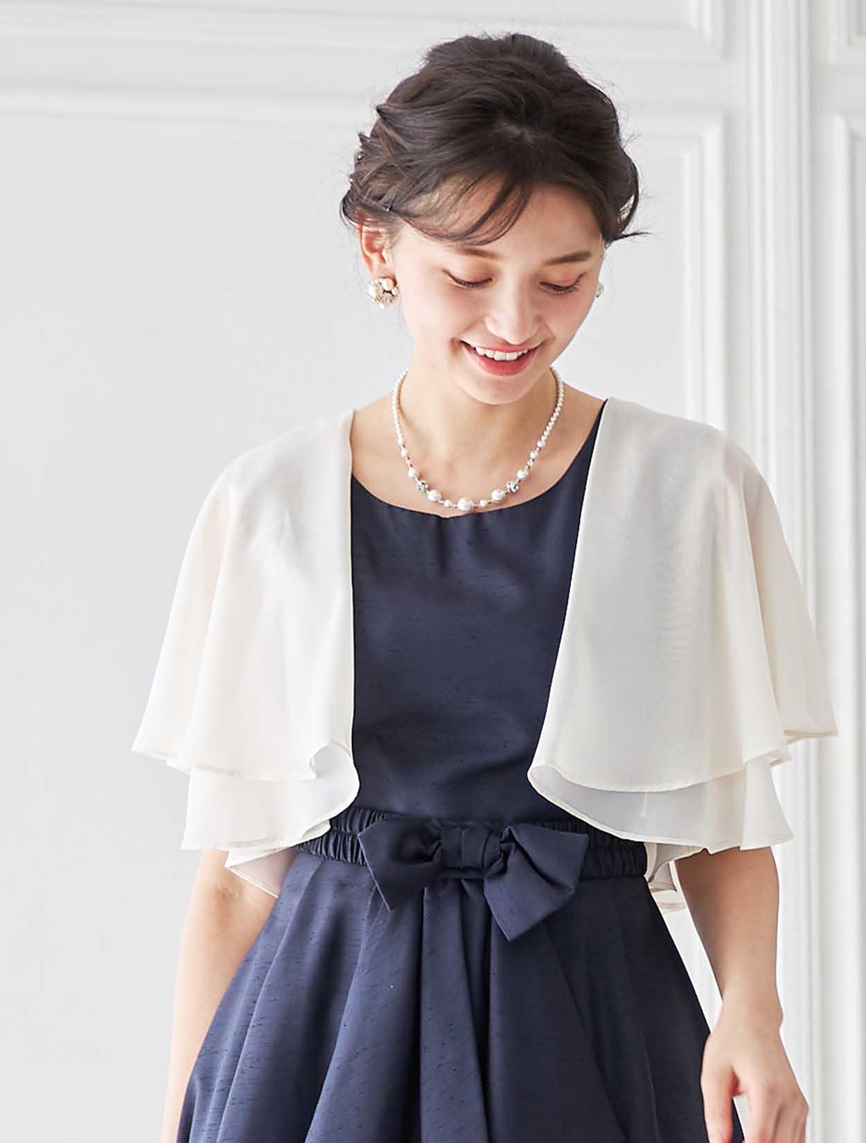 エアリーなボレロはダークカラーのドレスを華やかなパーティー仕様の表情にしてくれます。