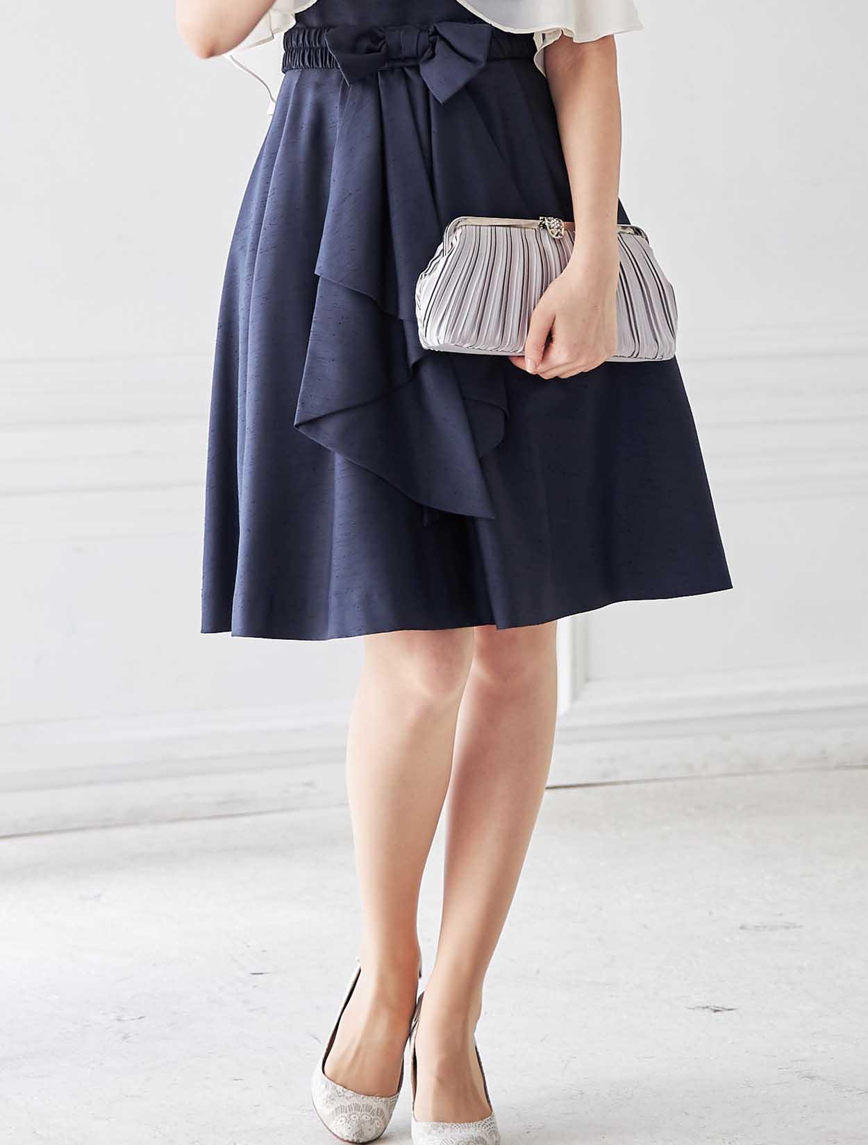 キュッと締まったウエストにフワッと広がるスカートで、メリハリあるスタイルを叶えます。ウエストのリボンは前後どちらでもお好みで。