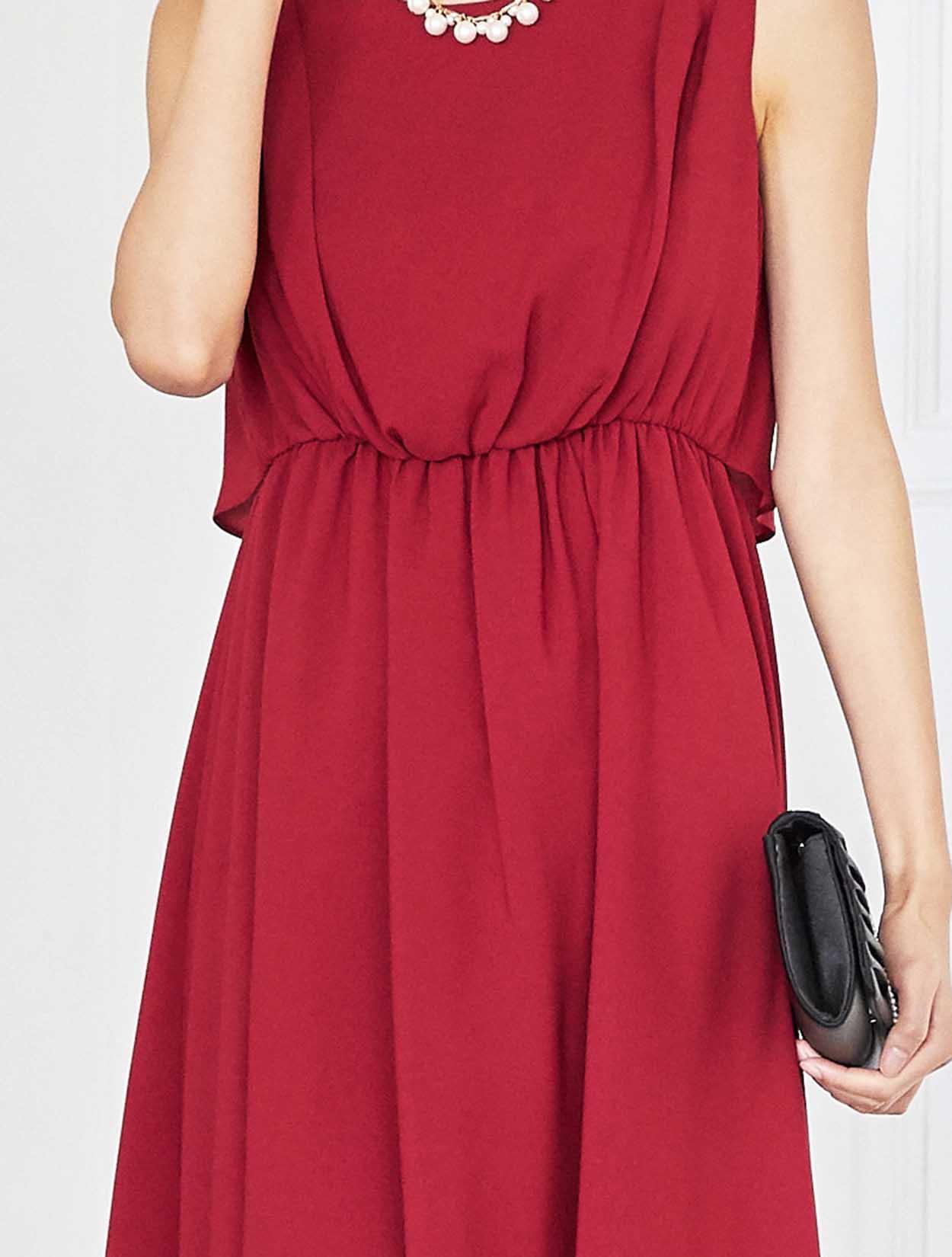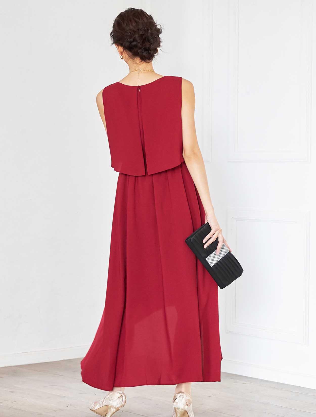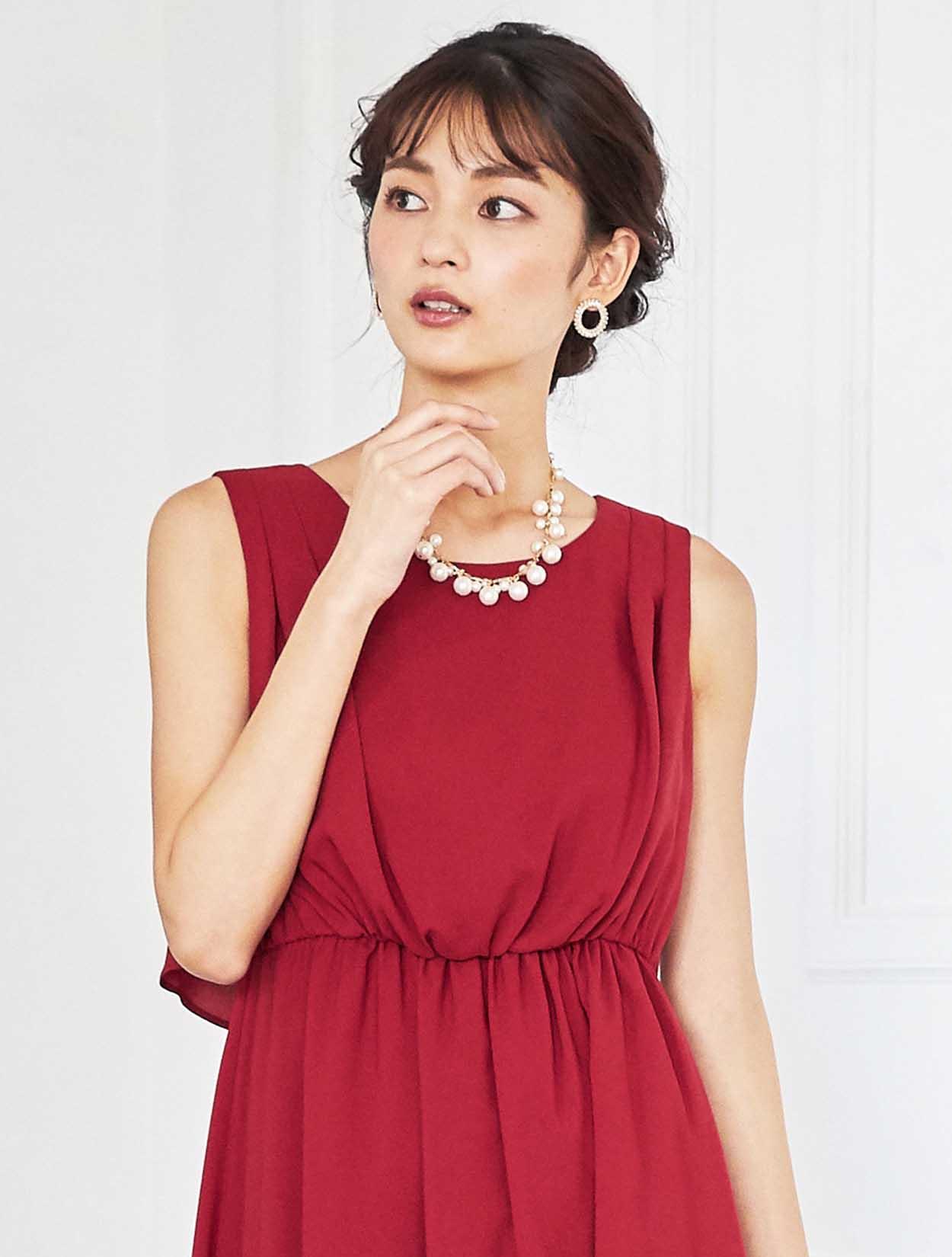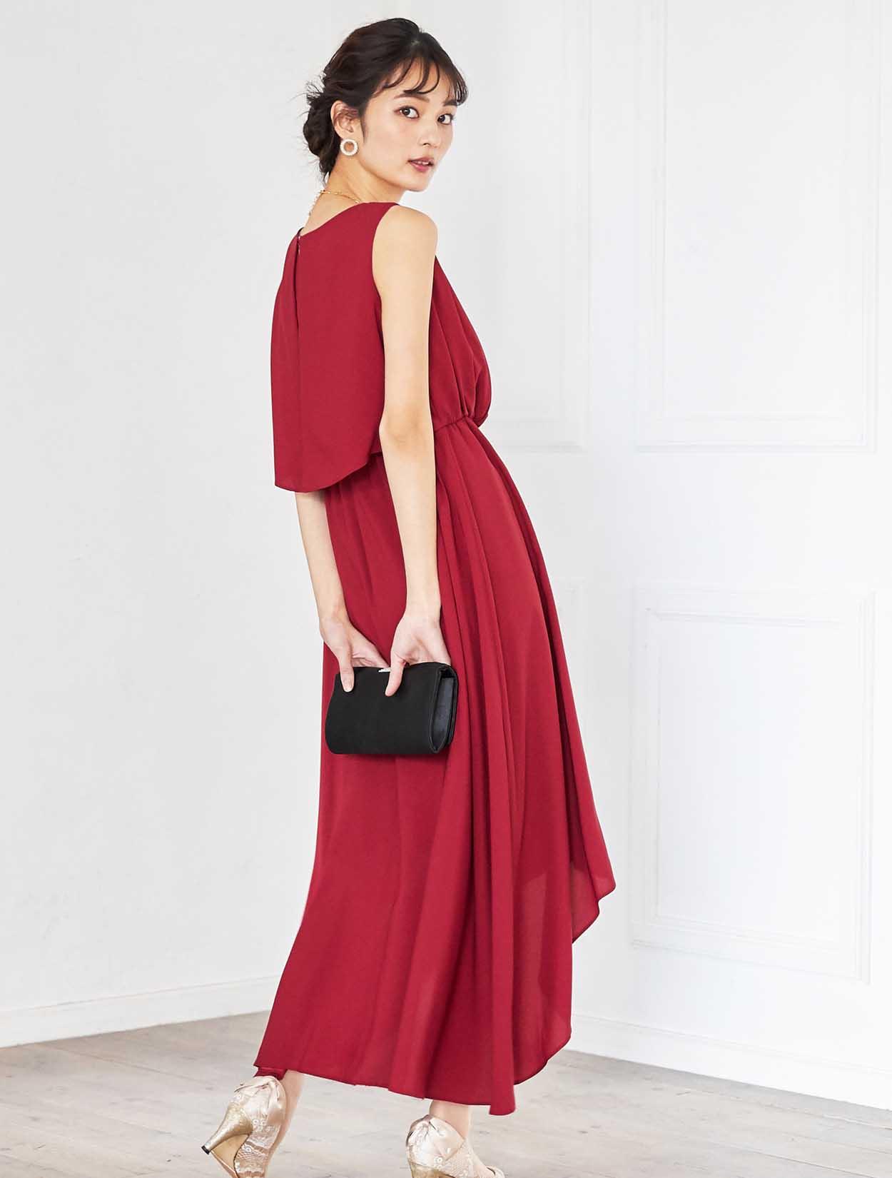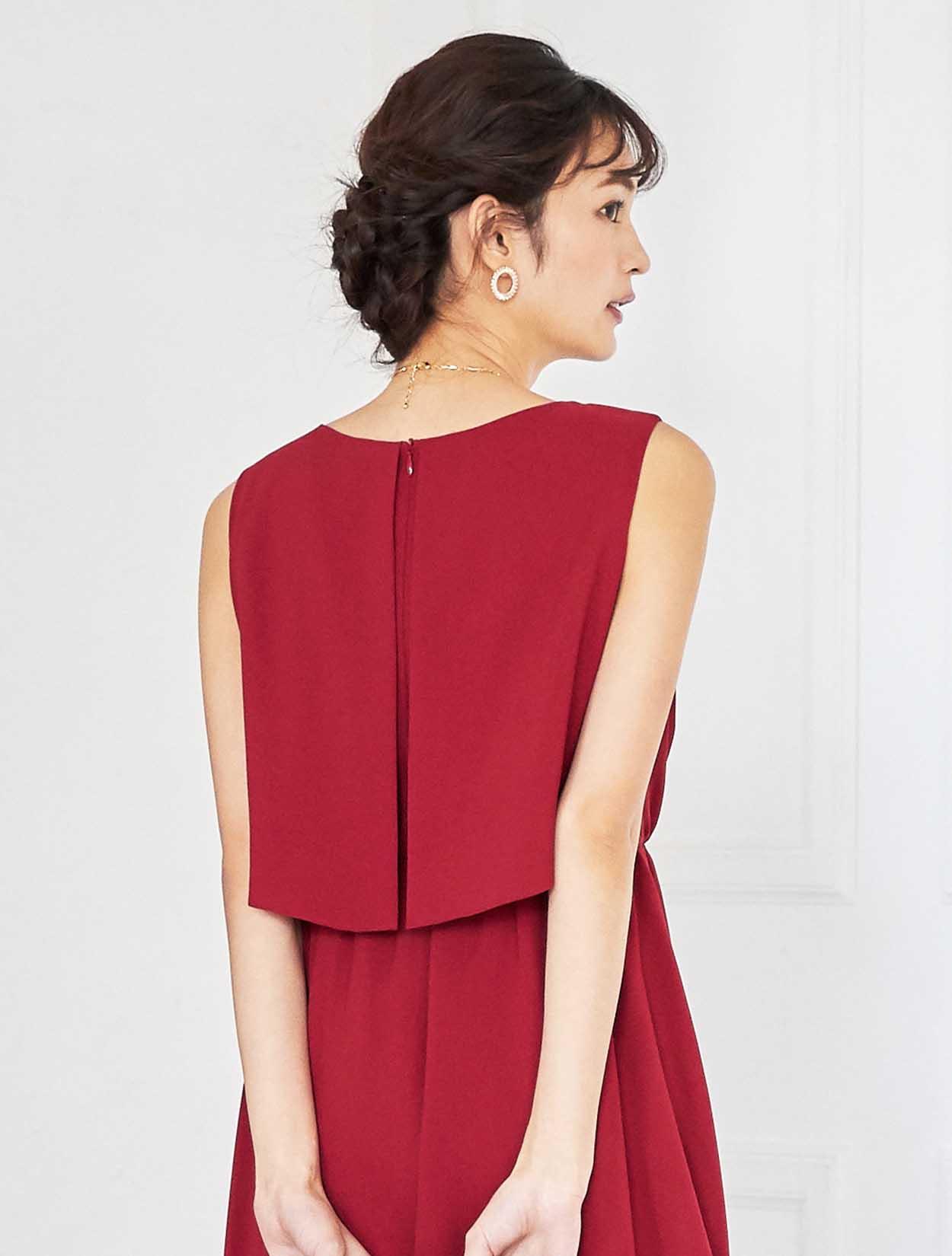 ドラマティックなレッドが華やかなミディ丈ドレス