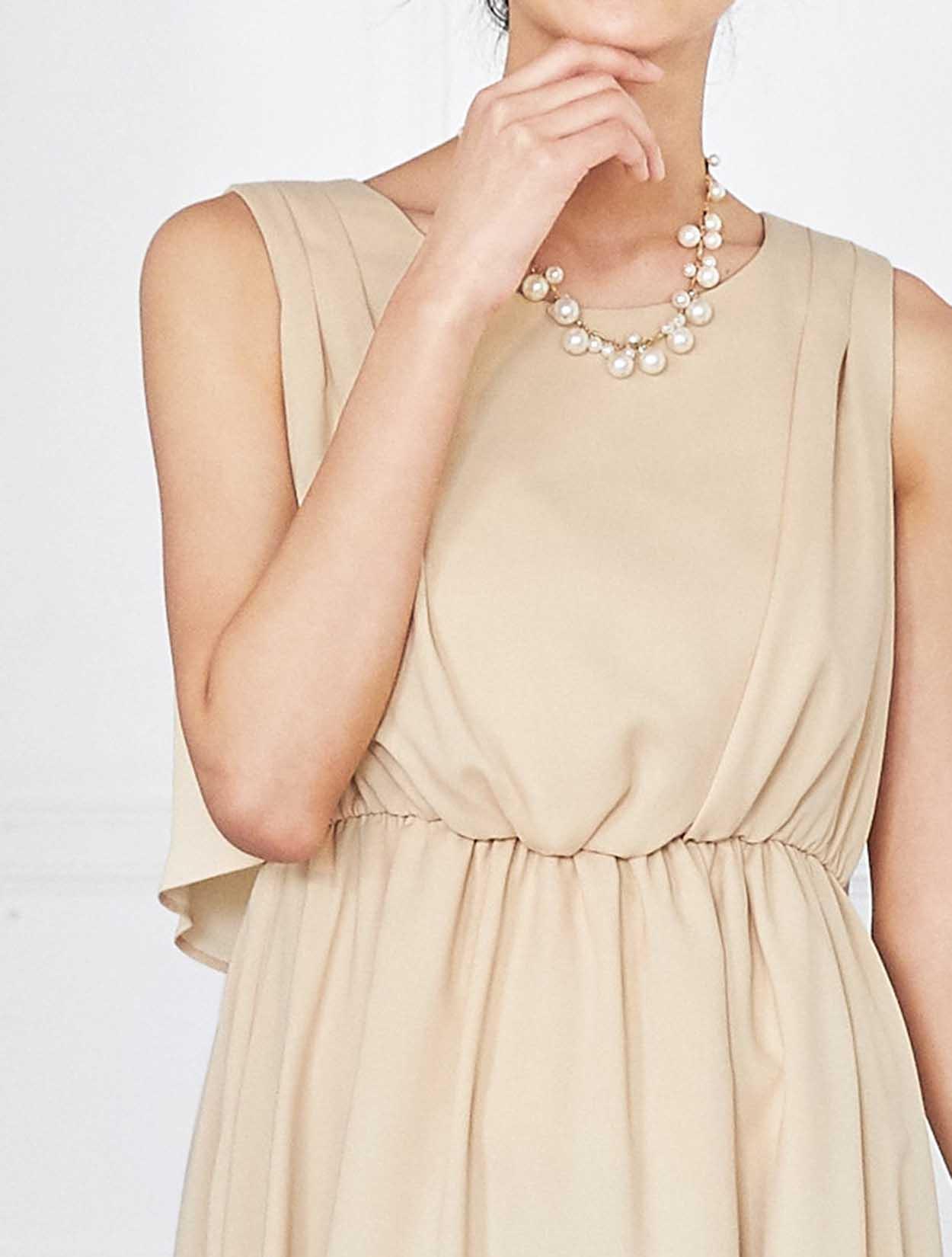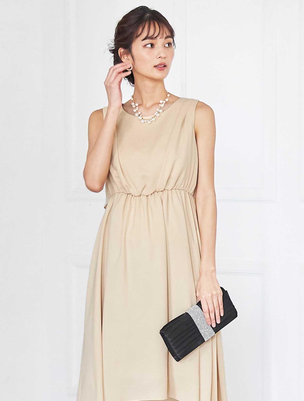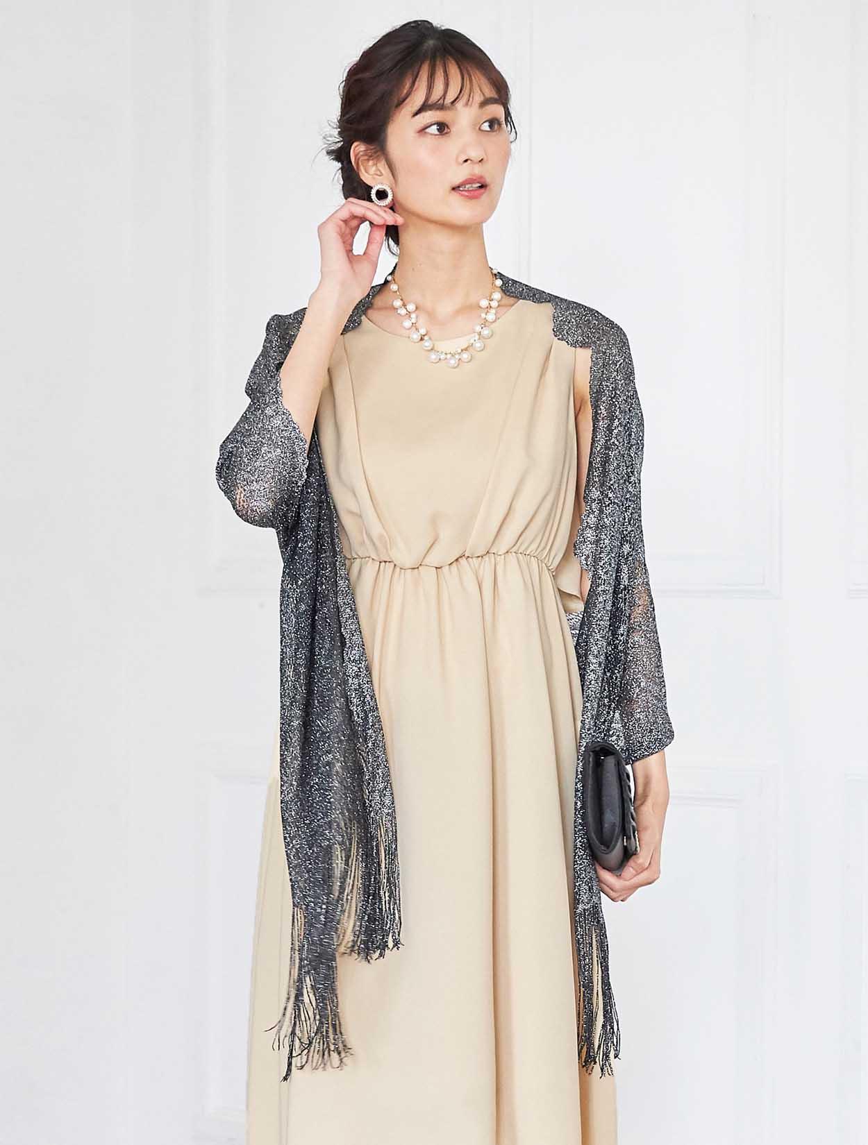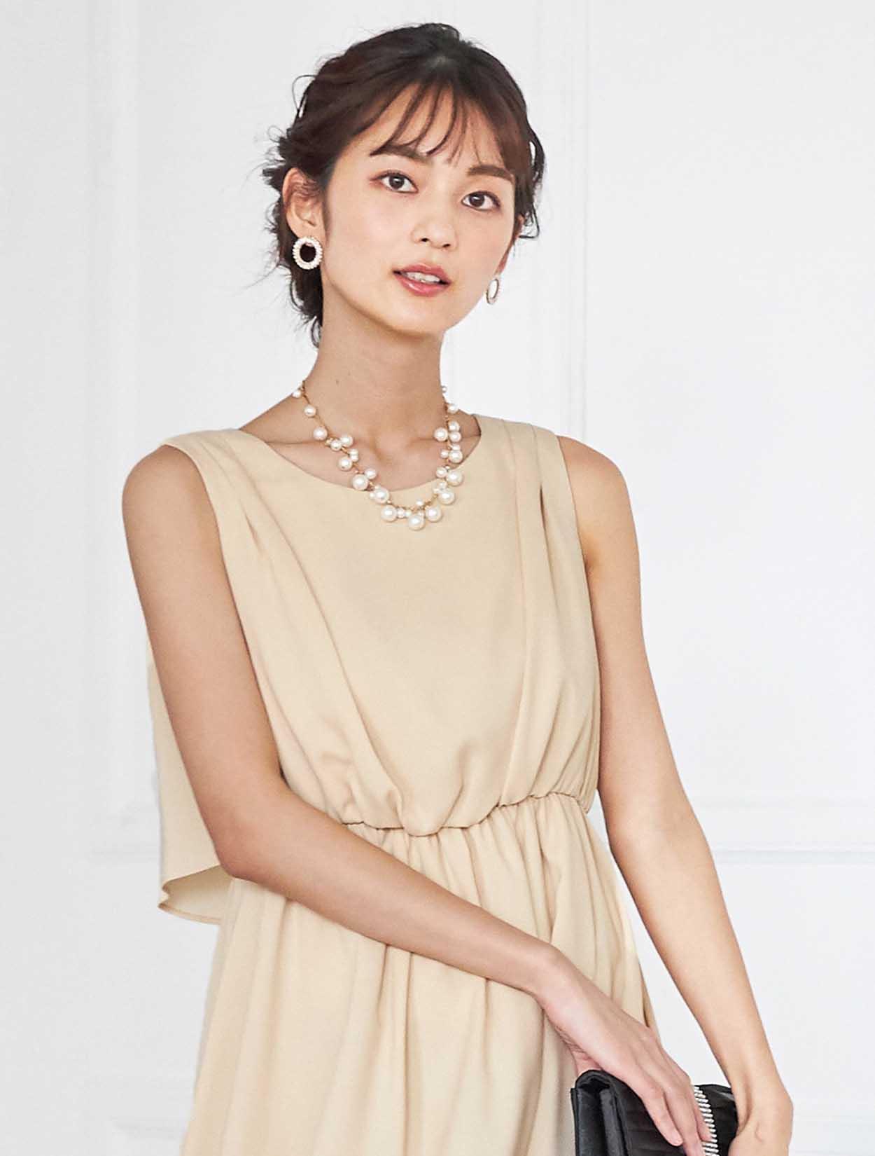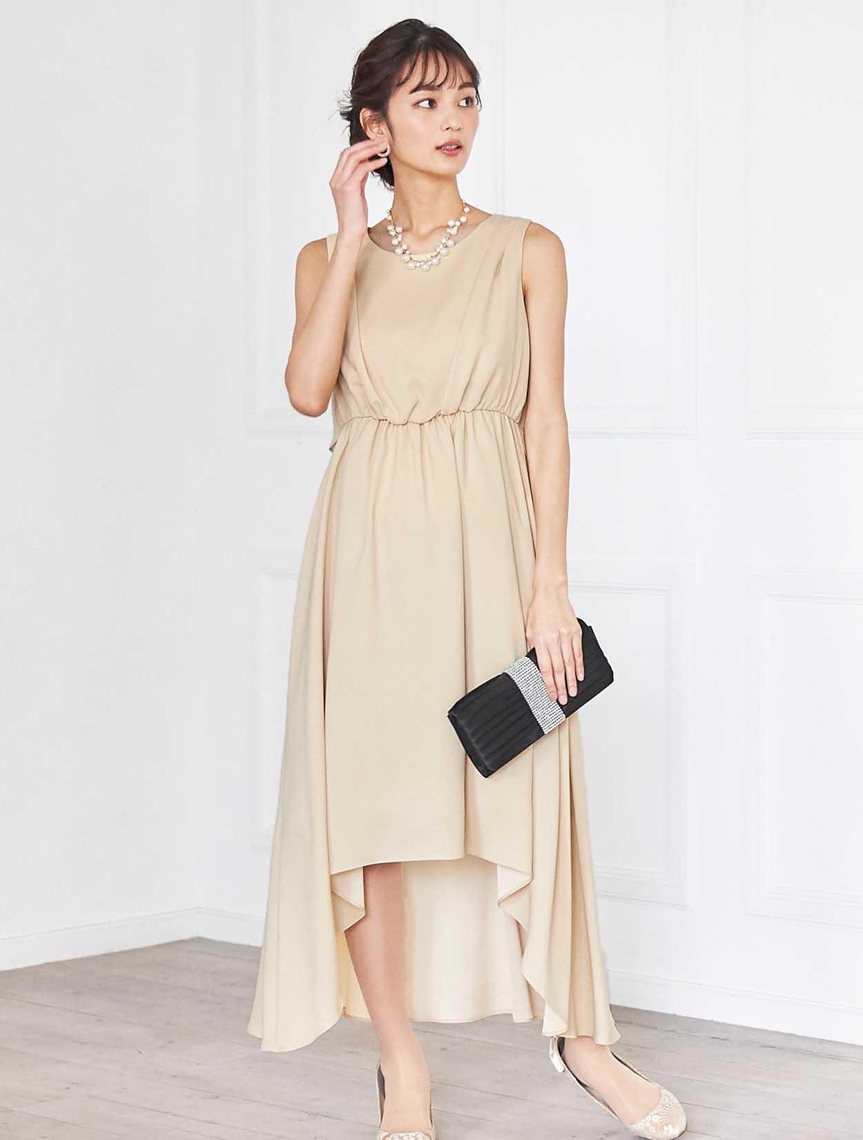 イエローがかった明るいベージュはトレンド感たっぷり。レンタルドレスならではのカラーです。