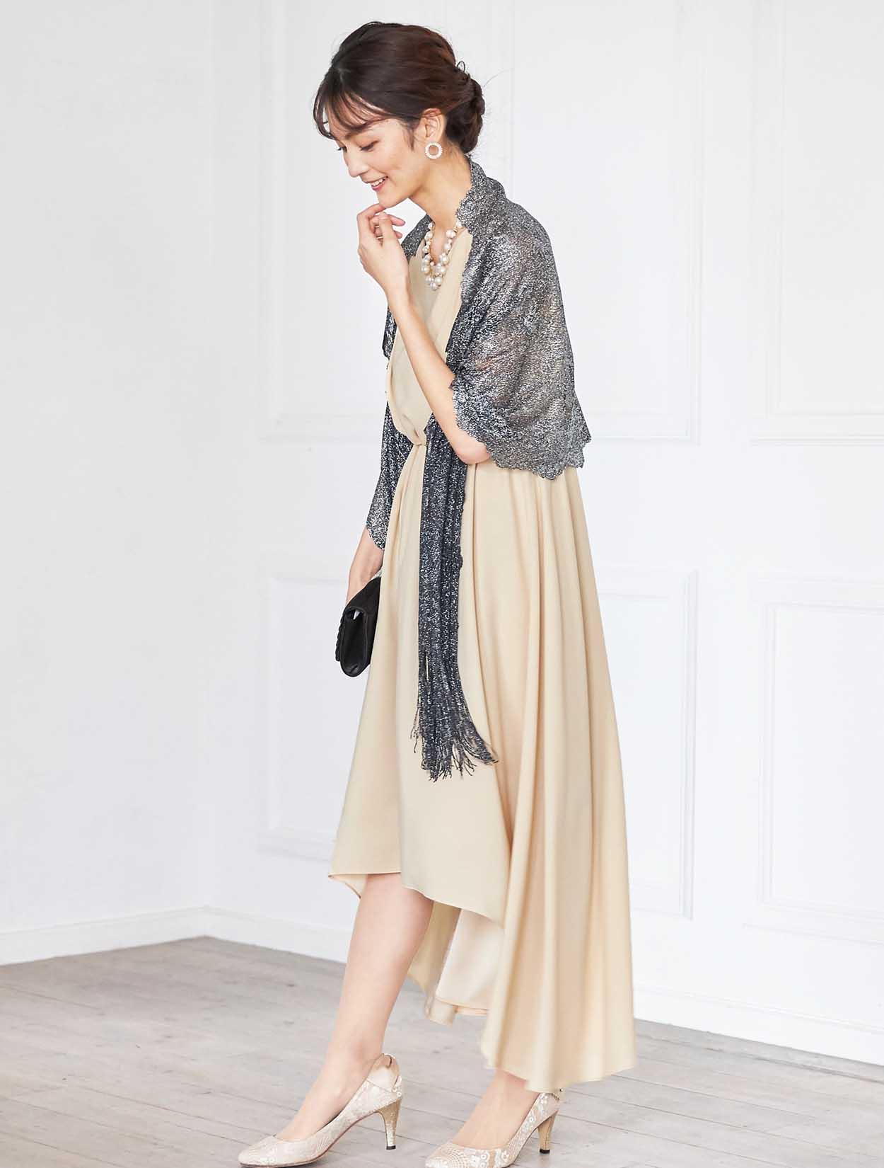 流れるスカートラインがエレガントなミディ丈ドレス