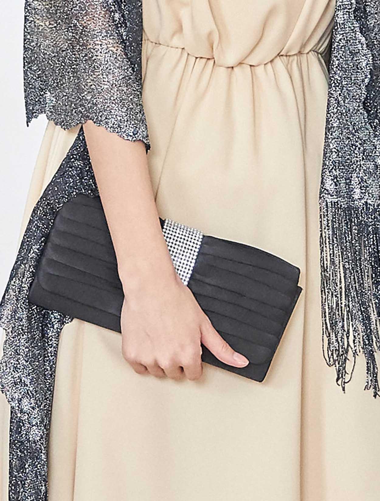 バッグに施されたラインストーンが華やかなパーティーシーンを彩ります。
