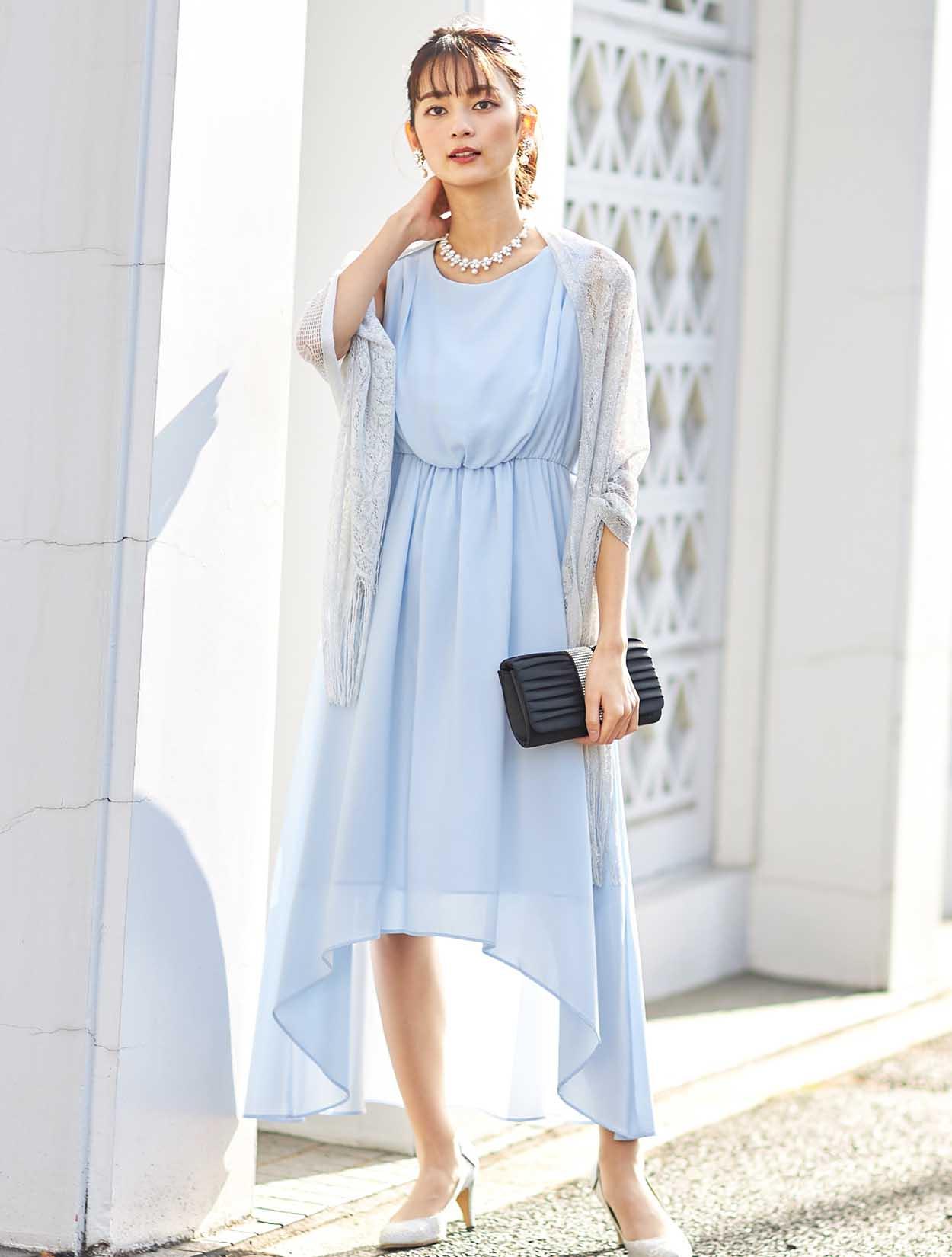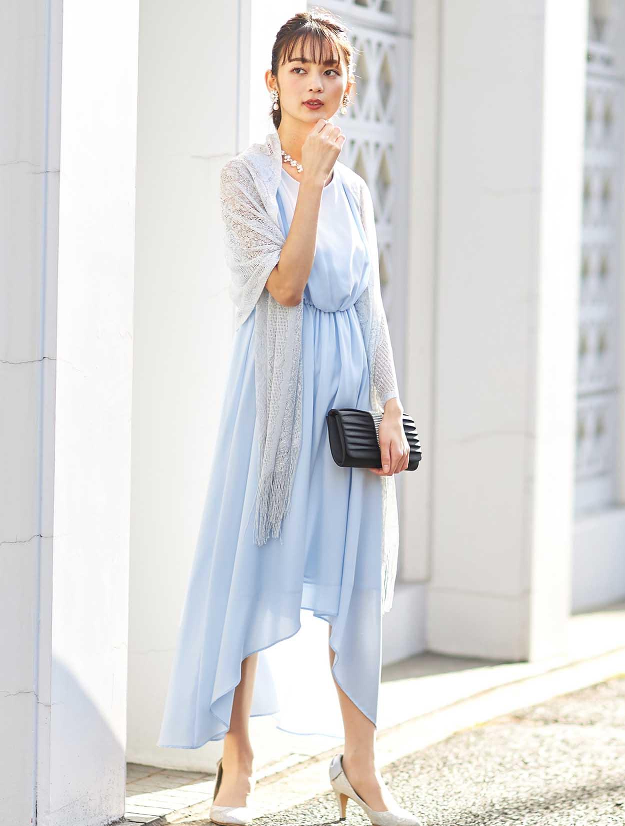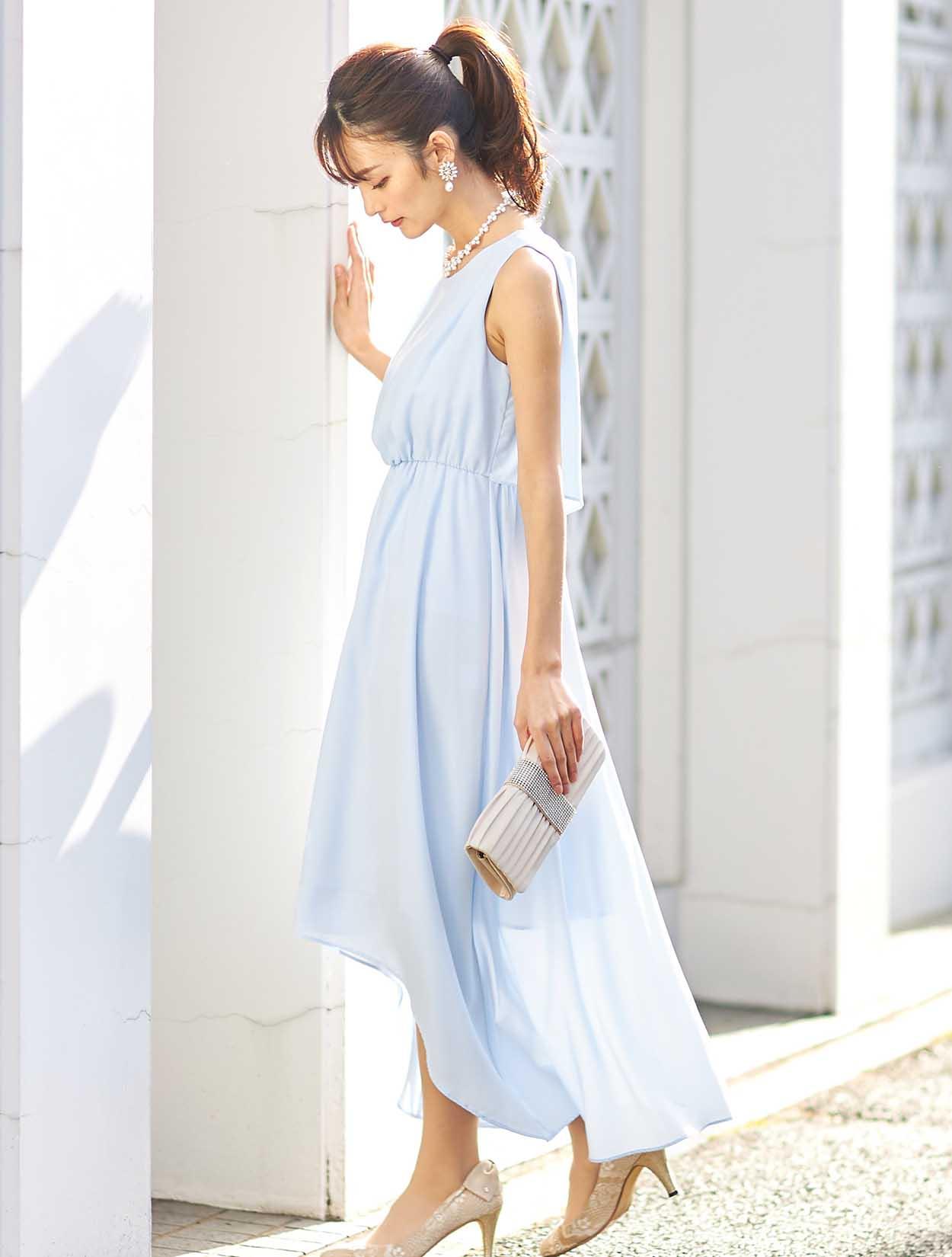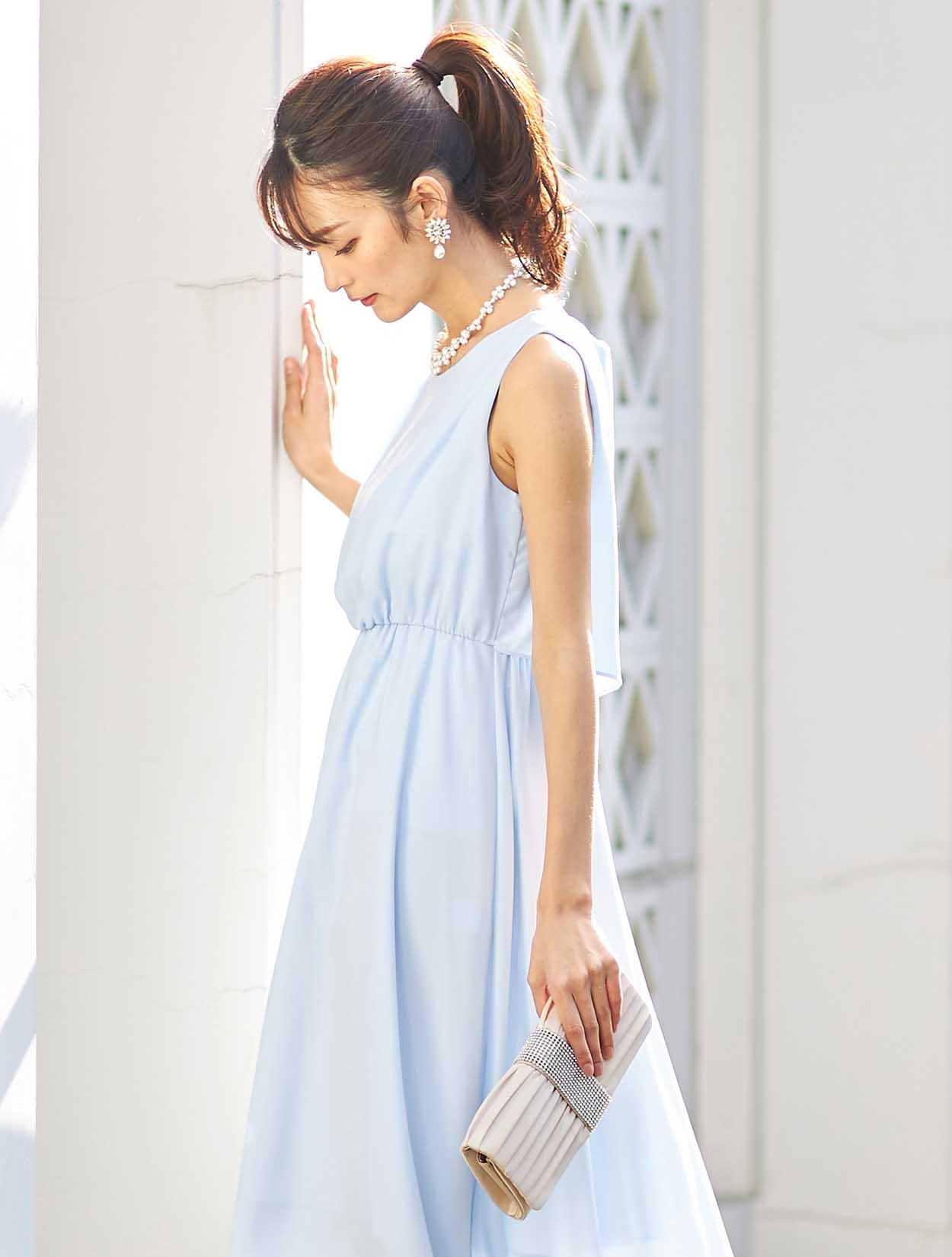 涼やかなサマーカラーが目を惹くミディ丈ドレス